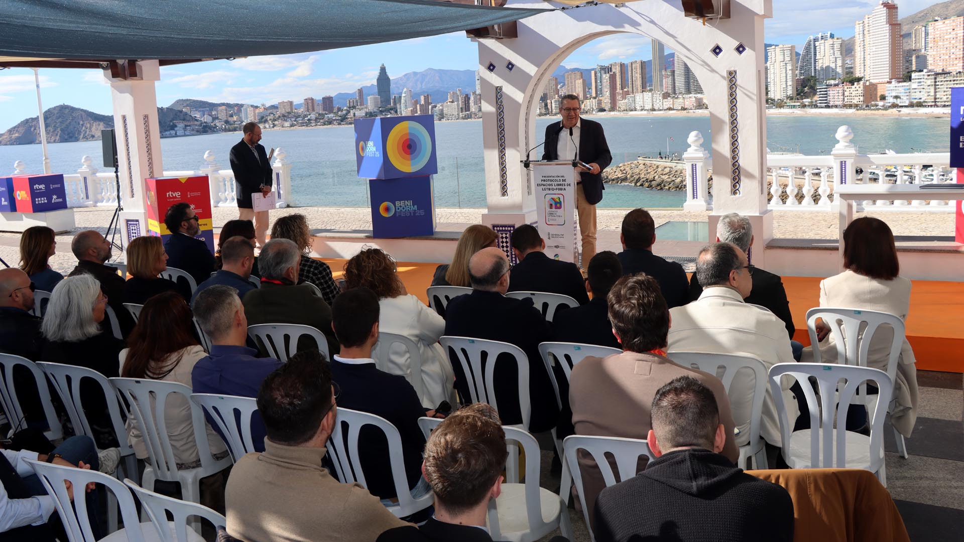 El acto, que ha tenido lugar en El Castell y coincidiendo con la celebración esta noche de la final de la cuarta edición del Benidorm Fest, ha congregado a numerosos representantes de la Corporación municipal, entre ellos la edil de Igualdad y Bienestar Social, Ángela Zaragozí, así como de entidades y colectivos LGTBIQ+ o que trabajan en áreas relacionadas con la igualdad y la diversidad. Asimismo, también han estado presentes el director general de Diversidad, Stephane Soriano; la directora general de Familia, Infancia y Adolescencia y Reto Demográfico, Angélica Such; así como el secretario autonómico y el director general de Turismo, José Manuel Camarero e Israel Martínez; el senador Agustín Almodóbar; y alcaldes y ediles de otros municipios de la provincia de Alicante.