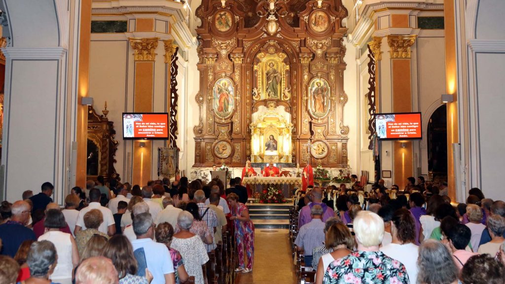 La comitiva llegó hasta la Plaça del Torrejó en pasacalles tras haber recogido la imagen del patrón de la sede de la Associació Cultural i Recreativa La Barqueta. Una vez descubierto el cartel, la actividad se trasladó a la parroquia de Sant Jaume y Santa Anna, donde el arzobispo de Coro (Venezuela), monseñor Mariano José Parra Sandoval, ofició una misa en honor al patrón. Durante la misma se procedió a la bendición de banderines que las Reinas y el Abandero impusieron a los estandartes de la Comissió y l’Associació.