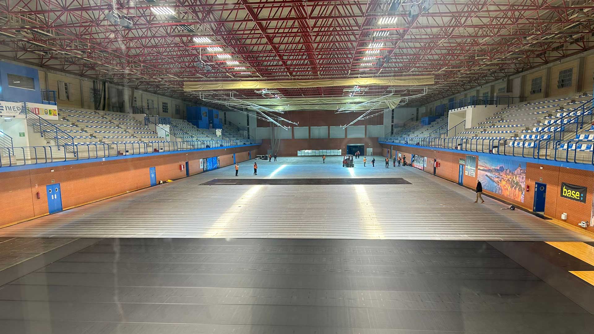 “Un equipo de unas 30 personas trabaja prácticamente las 24 horas para completar la fase de acondicionamiento de las instalaciones, en la que se ha prestado especial interés en la protección de las pistas polideportivas del pabellón central” ha explicado Carrobles, que también detallaba que se han colocado hasta tres materiales diferentes de protección sobre la tarima de las pistas deportivas. “Primero se ha colocado una superficie de bateco”, un revestimiento protector de pavimentos deportivos, y sobre el mismo “se han instalado 3.500 metros de contrachapado de madera”. A continuación, se han montado “suelos técnicos de última generación”.