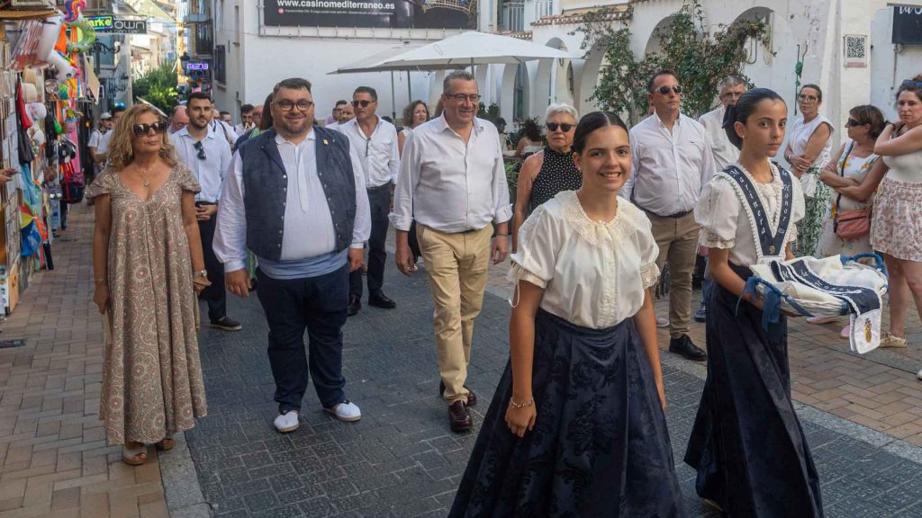 Finalizada la misa, la celebración continuó en el Castell con el pregón oficial, a cargo de Vicenta Asensio, quien destacó en su intervención las profundas raíces marineras de Benidorm, ciudad de pescadores, almadraberos y marinos mercantes. La pregonera animó tanto a vecinos como a visitantes a disfrutar de una de las fiestas más representativas y arraigadas en el sentir del pueblo.