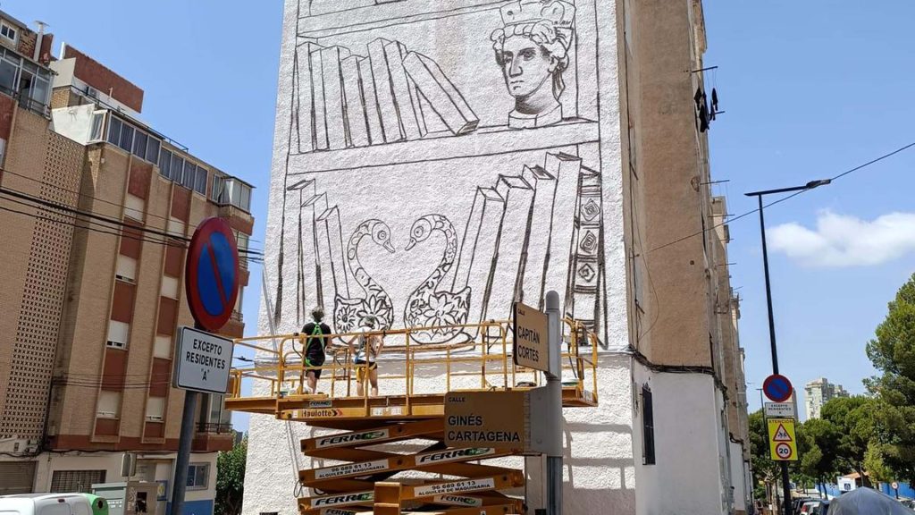 Ambos murales se están realizando en las paredes laterales de la fachada del edificio Aitana, ubicado en la calle Capitán Cortés, y son obra del artista urbano Ángel Toren. La edil de Patrimonio Histórico y Cultural ha destacado que “precisamente por su ubicación –frente al colegio público de Infantil y Primaria Bautista Lledó y muy próximo a los colegios Serra d’Aitana y Vasco Núñez de Balboa, así como a la Ciudad Deportiva Guillermo Amor–, van a poder ser vistos a diario no solo por muchísimos vecinos sino también por cientos de niños cuando van al colegio o a practicar deporte a nuestra Ciudad Deportiva, haciendo así que se empapen de nuestra historia y tradiciones”.
