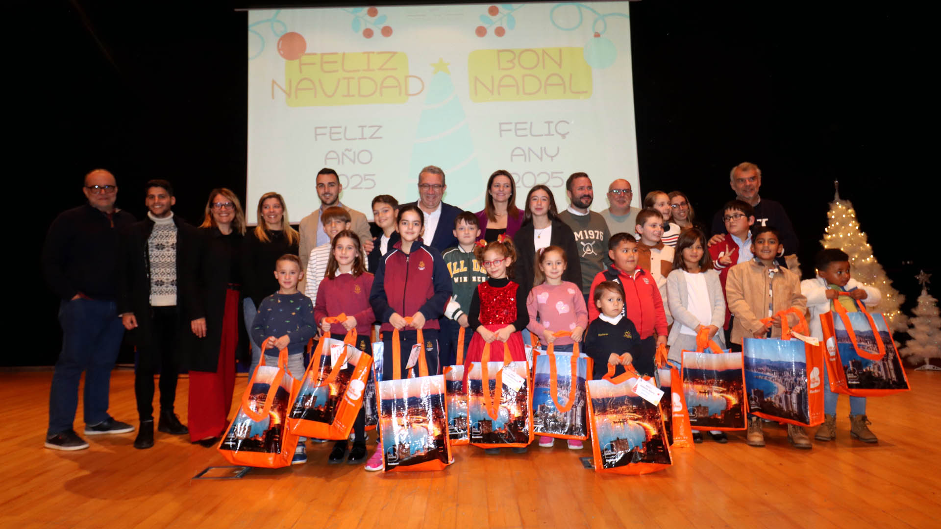 Una veintena de niños y niñas de Benidorm con edades comprendidas entre los 3 y los 12 años han sido premiados en la XVI edición del Concurso de Postales Navideñas que cada año convocan las concejalías de Educación y Cultura del Ayuntamiento de Benidorm y en el que han participado miles de alumnos de Infantil y Primaria de nuestra ciudad. El alcalde Toni Pérez, junto a los concejales Maite Moreno y Jaime Jesús Pérez, responsables de ambos departamentos, han sido un año más los encargados de entregar los premios a los autores de las postales seleccionadas, en un acto que tuvo lugar la tarde de ayer, jueves, en el Salón de Actos municipal y que congregó a numerosos escolares, familiares, docentes y miembros de la Corporación municipal.