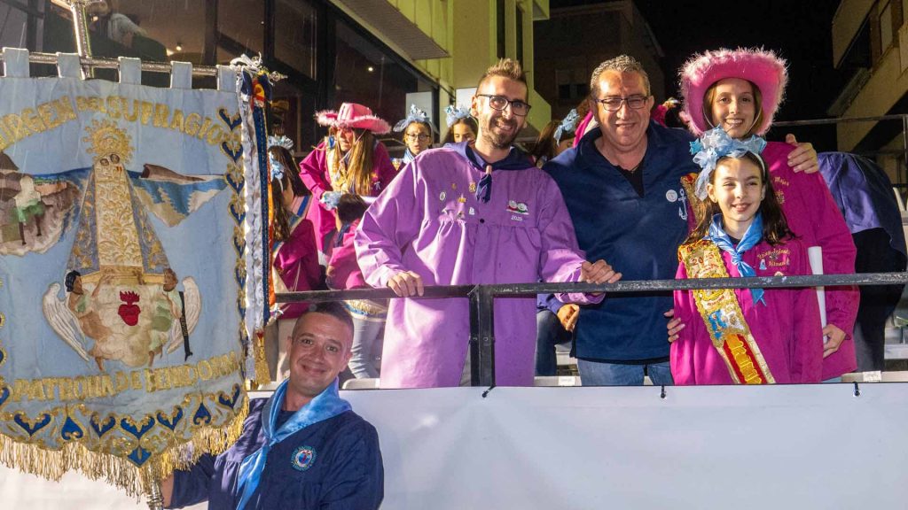La lluvia y más de 5.000 peñistas pertenecientes a las 222 agrupaciones de la Associació de Penyes Verge del Sofratge participaron en este vistoso pasacalle, que recorrió las calles Ruzafa y Martínez Alejos hasta llegar a la tribuna principal, donde esperaban las reinas de las Fiestas, Paula Pascual y Aitana Pérez, junto a sus cortes de honor, el alcalde Toni Pérez, la concejala de Fiestas, Mariló Cebreros, otros miembros de la corporación municipal, los diputados autonómicos José Ramón González de Zárate y Mario Villar y los presidentes de la Comissió de Festes Majors Patronals y de la Associació de Penyes Verge del Sofratge, Susana Martínez y Jonathan López.