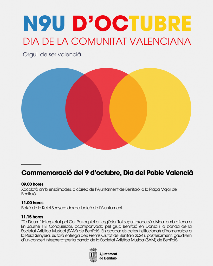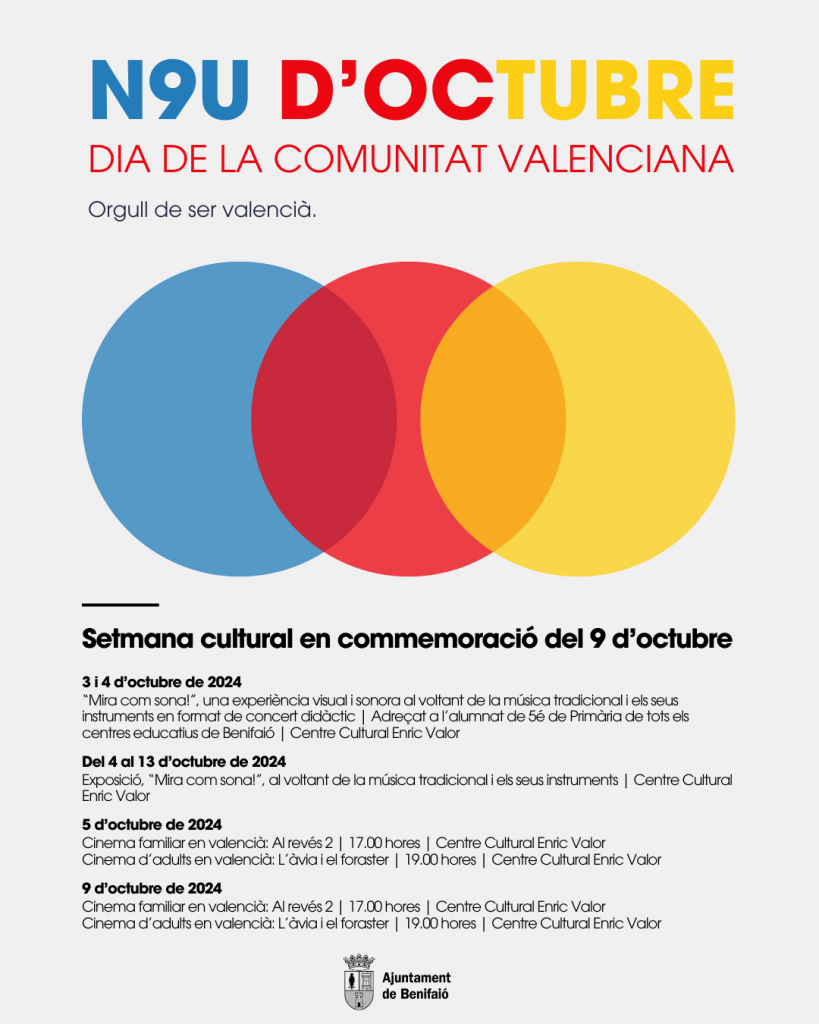 El Ayuntamiento de Benifaió, a través de la concejalía de cultura, tiene ya preparada una oferta cultural para celebrar del 4 al 13 de octubre el Día de la Comunidad Valenciana.