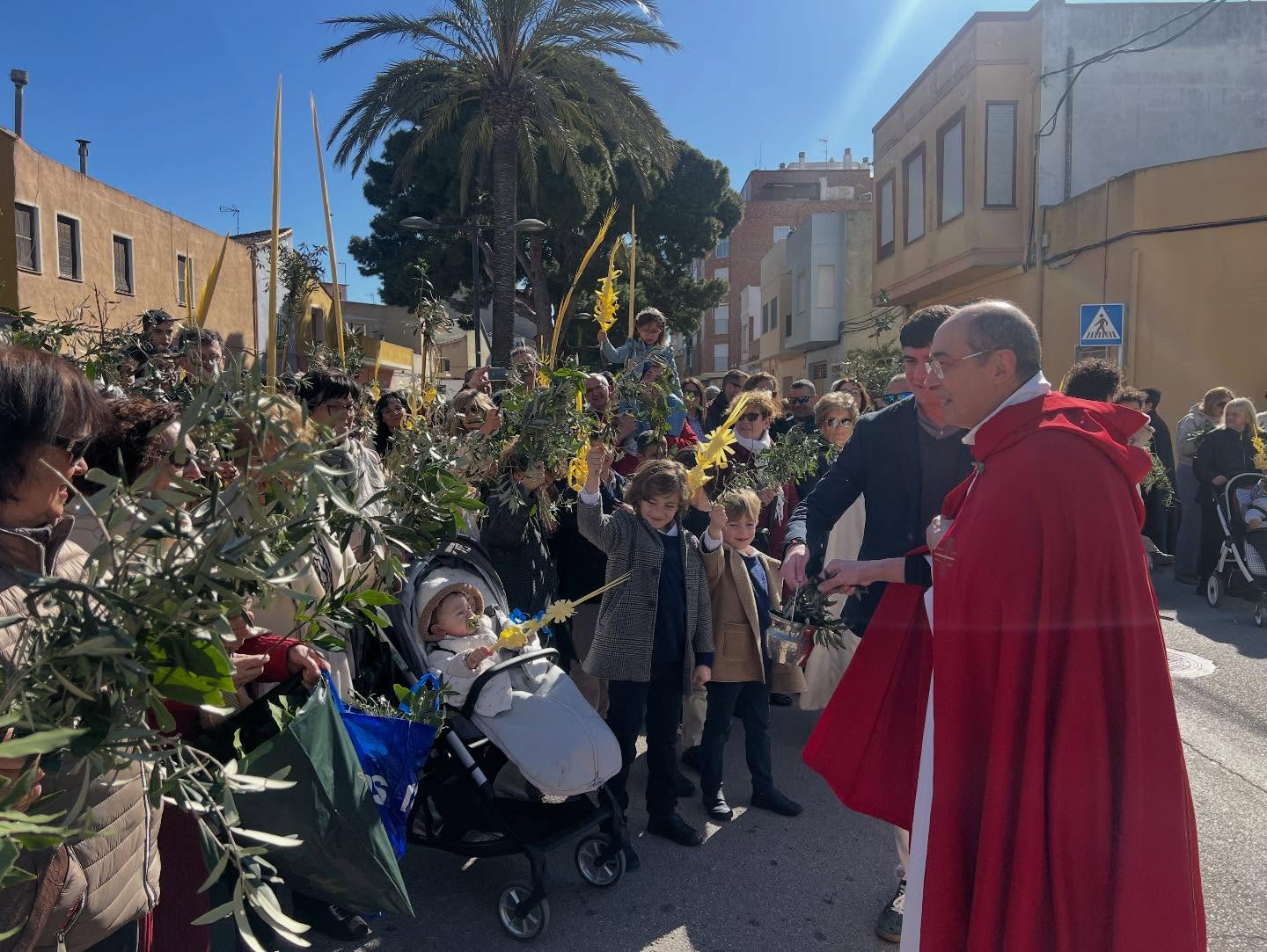 Las cofradías y hermandades de Benifaió, la alcaldesa, junto a miembros de la corporación municipal y un gran número de vecinos, como viene siendo habitual en esta procesión, formaban parte de la comitiva que salió desde la ermita tras bendecir el cura párroco las palmas de los asistentes. El recorrido finalizó en la iglesia parroquial donde se celebró la misa del Domingo de Ramos.