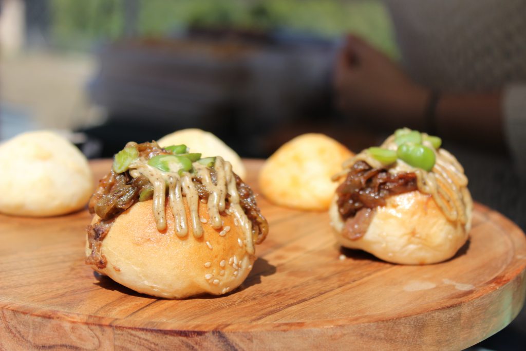 El viernes, la concina de autor tomó el mando con el Showcooking ofrecido por la cocinera y divulgadora gastronómica Maria Albero (@saboreanda) y el chef de Dexcaro Carlos G. Moreno. Cocinaron dos platos con fava poblera que después se pudieron degustar de forma gratuita. El acto estuvo presentado por la creadora de contenido Elena Vidal (@alicantestreetstyle), y amenizado con la música del saxofonista Alfredo Ripoll.