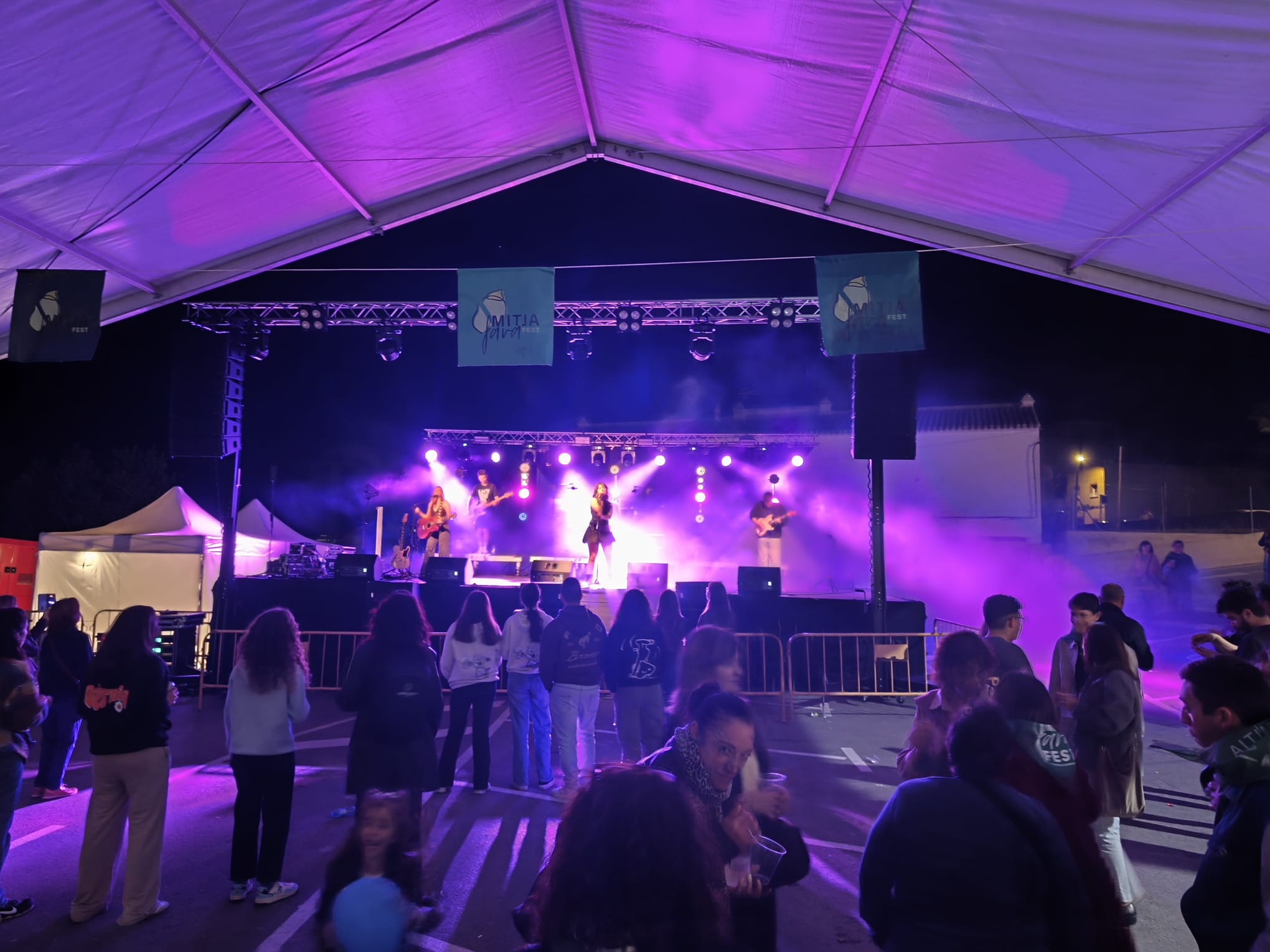 A partir de las 17:30h, el foco de atención se trasladó a la carpa de la avenida de València con el ‘Tardet Pobler’, un espacio de convivencia que ofreció desde talleres y juegos familiares como ‘La Fava Exterminadora’ hasta propuestas de ocio responsable con la coctelería 0’0 del Consejo de la Infancia y la Adolescencia (CLIA). La cultura popular alcanzó su máxima expresión con la imponente actuación de la Muixeranga de la Marina Alta, dando paso a un maratón musical que recorrió diversos estilos con Spicy Cherries, Tres Fan Ball, Bèrnia y Esther, para terminar la noche con la energía de La Xe-Ranga y la sesión de Fiona Onix DJ Set en un recinto que contó con servicio de tapas y bebidas a precios populares.