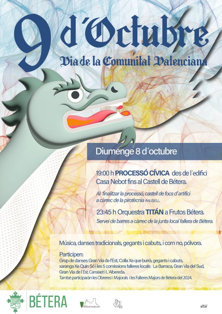•  La processó cívica donarà inici el diumenge 8 d’octubre a les 19:00h des de l’edifici de Casa Nebot i fins al Castell de Bétera