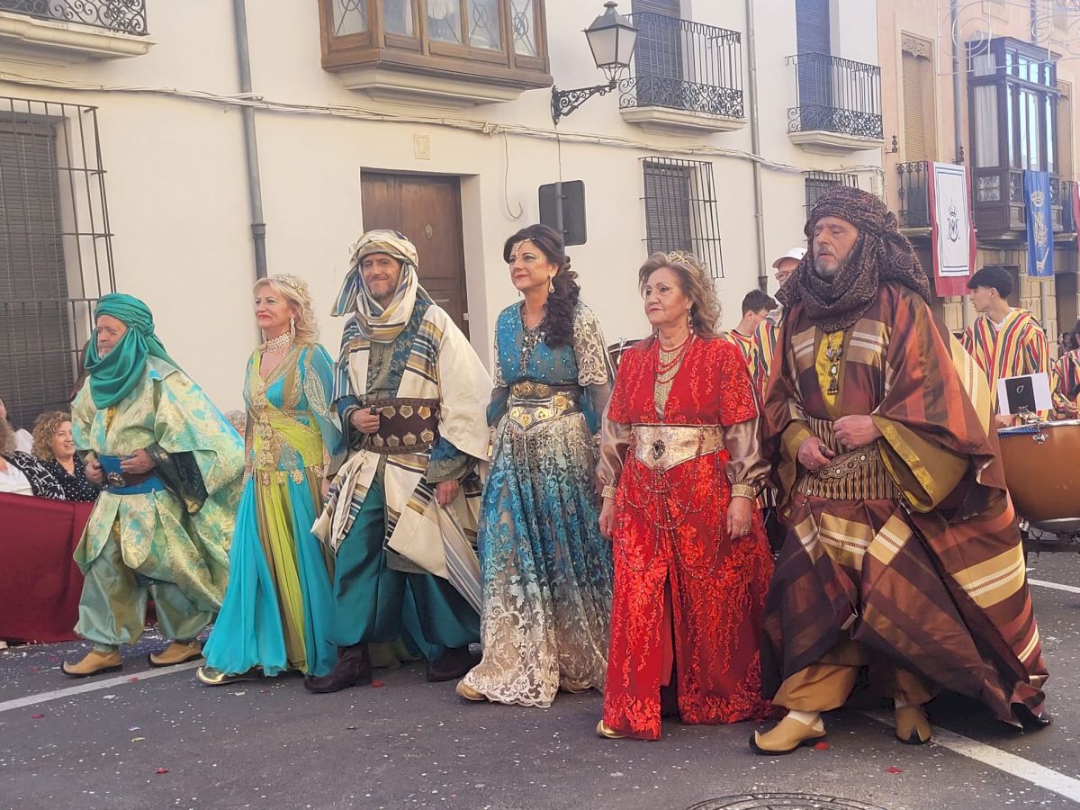 Los boatos de los capitanes de las siete comparsas abrieron el desfile de cada una de ellas llenando de espectacularidad un desfile cargado de colorido de música. Con cerca de 300 años de historia, el municipio cuida de sus tradiciones con mimo y en cada casa festera y cada comparsa se afanan por mantener la esencia festera.
