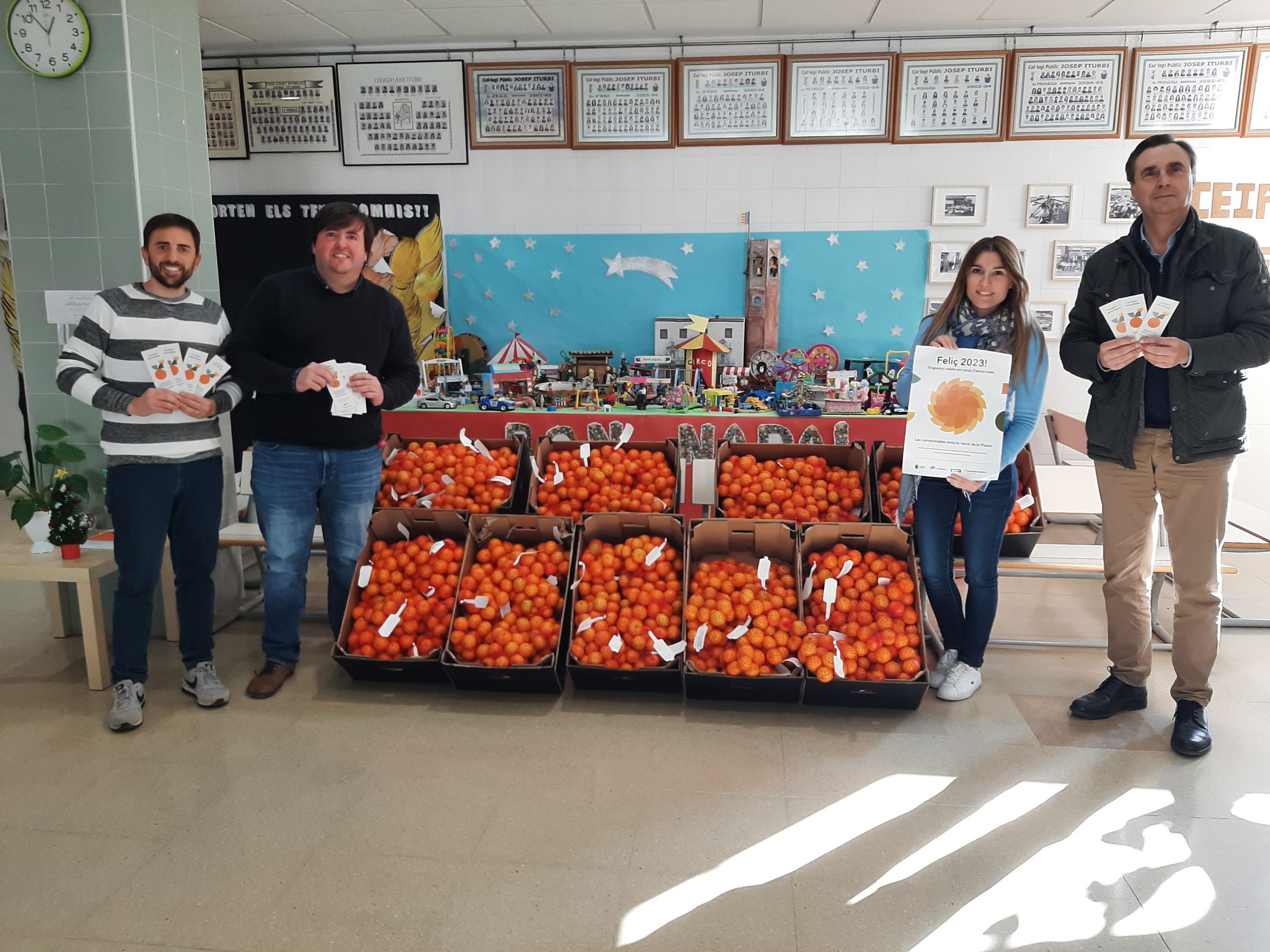 Durant aquests dies s’han repartit 1.600 malles d’un quilo de clemenules en els 10 centres educatius d’Infantil i Primària de la ciutat, i en el CEE Pla d’Hortolans, acompanyades d’un punt de llibre on es dona a conéixer “La reina de la Plana”, que no és res més que la clemenules, “la varietat reina de la nostra terra, cultivada de manera tradicional pels nostres agricultors”, han afirmat Granel i Moros.