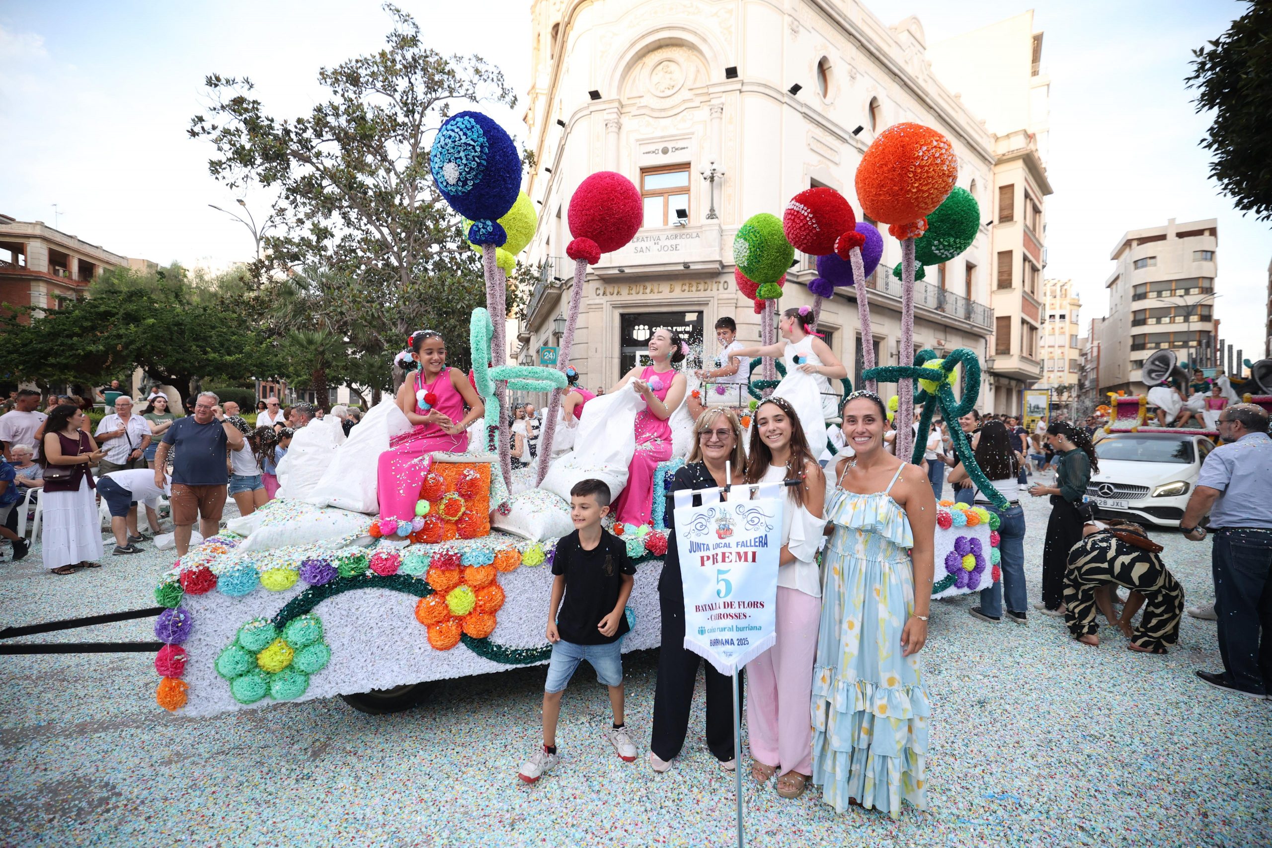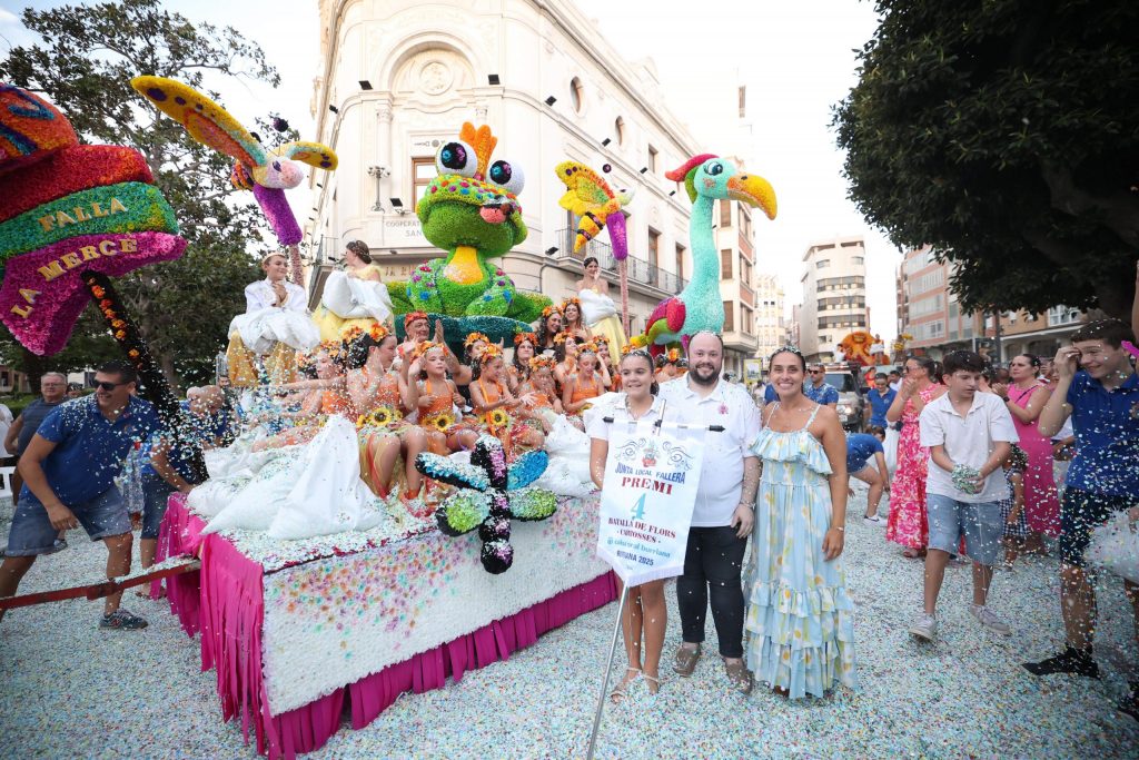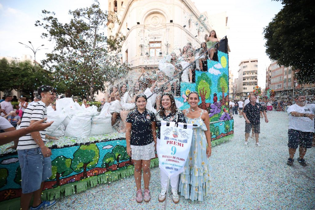 En esta edición también se han entregado los tradicionales premios a las mejores carrozas. El primer premio ha sido para la Falla Barri València, seguida por la Falla Societat Cardenal Tarancón y la Falla Societat de Caçadors. Completan la lista la Falla Barri la Mercè, la Falla Societat Sant Josep, la Falla Don Bosco, la Falla Barri d’Onda, la Falla Barri Sant Blai y la Falla Quarts de Calatrava. Además, la Falla Cardenal Tarancón ha recibido tanto el premio al mejor conjunto, patrocinado por OPG Fotogràfic, como el premio al mejor vestuario, otorgado por De Flores y Candelas.