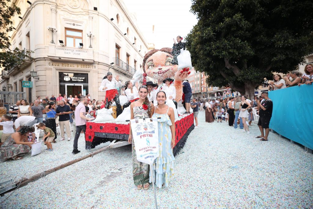 Burriana ha despedido las fiestas de la Misericordia de 2025 con la multitudinaria y popular Batalla de Flores que este sábado ha inundado de confeti y alegría las calles de la ciudad. La fiesta, declarada de Interés Turístico Provincial, ha puesto el broche de oro, junto al espectacular castillo de fuegos artificiales, a los festejos en honor a la Virgen de la Misericordia.