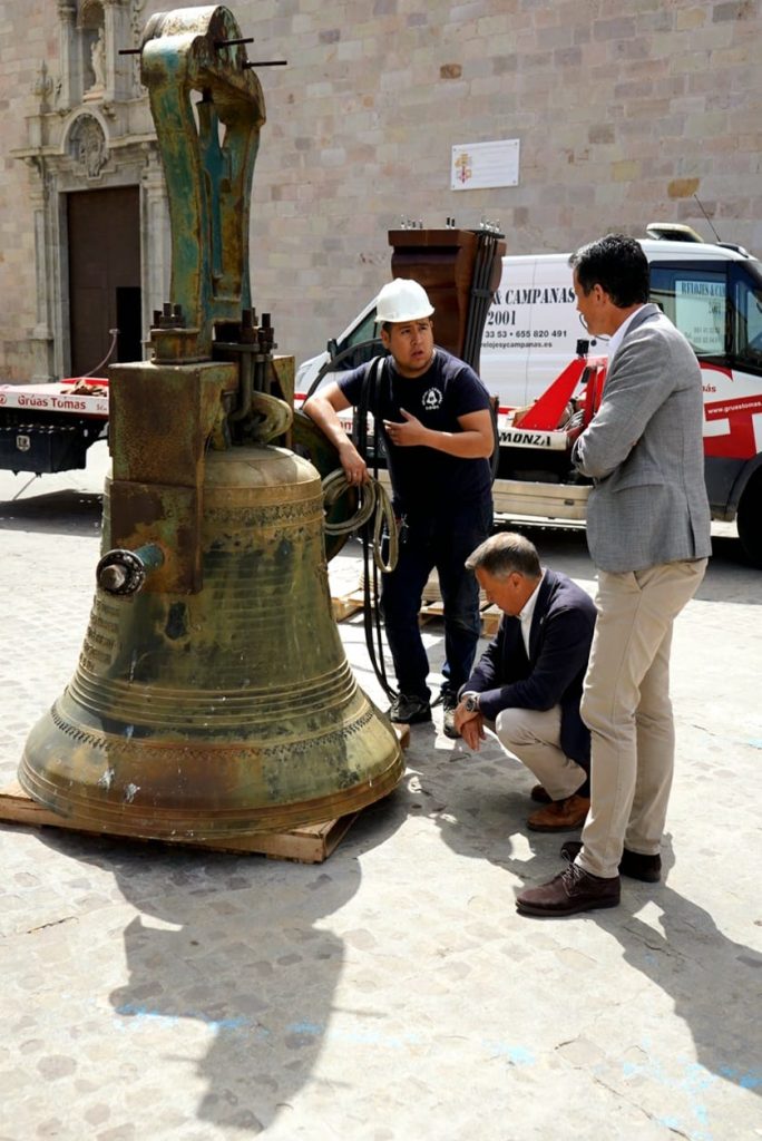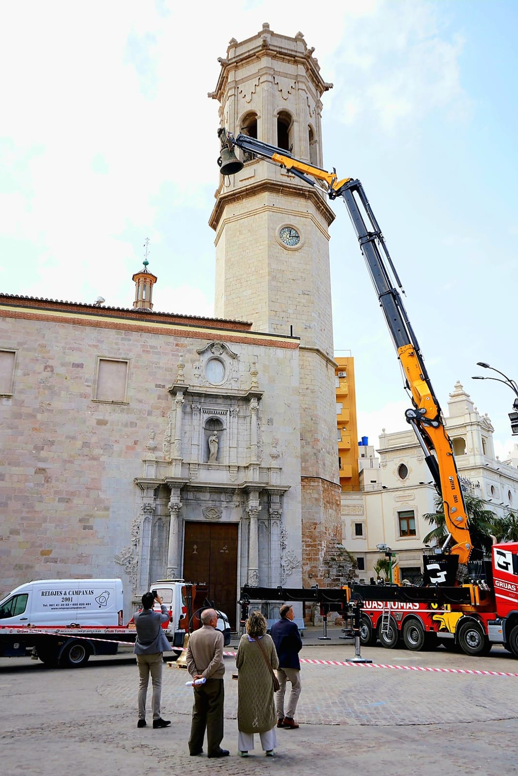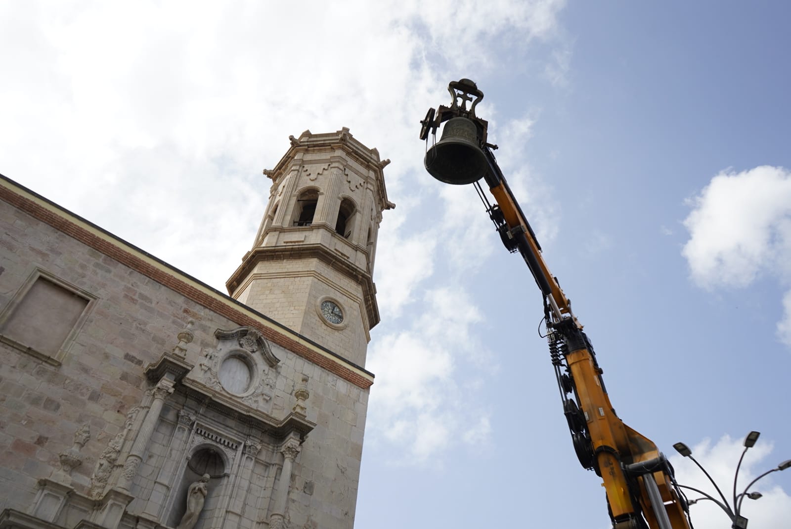 La capital de la Plana Baixa ha dado comienzo a los trabajos de restauración integral de la campana del Nostre Senyor, la pieza de mayor tamaño y uno de los símbolos más representativos del patrimonio cultural del municipio. Dada su magnitud, alrededor de 1500 kilos de peso y altura del campanario, unos 51 metros, el traslado de la campana ha requerido la utilización de maquinaria pesada.