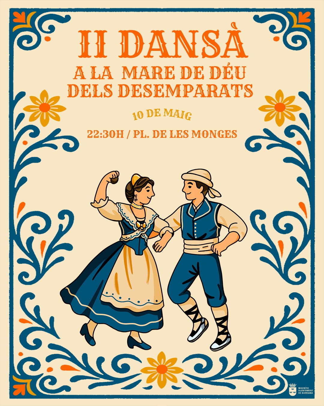 Tras el éxito de participación y acogida de la pasada y primera edición, el Ayuntamiento de Burriana, a través de la concejalía de Fallas, celebrará el próximo sábado 10 de mayo a las 22:30 horas en la Plaça de les Monges la II Dansà a la Mare de Déu dels Desamparats.