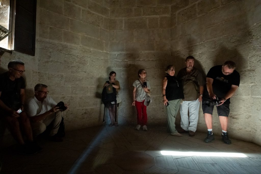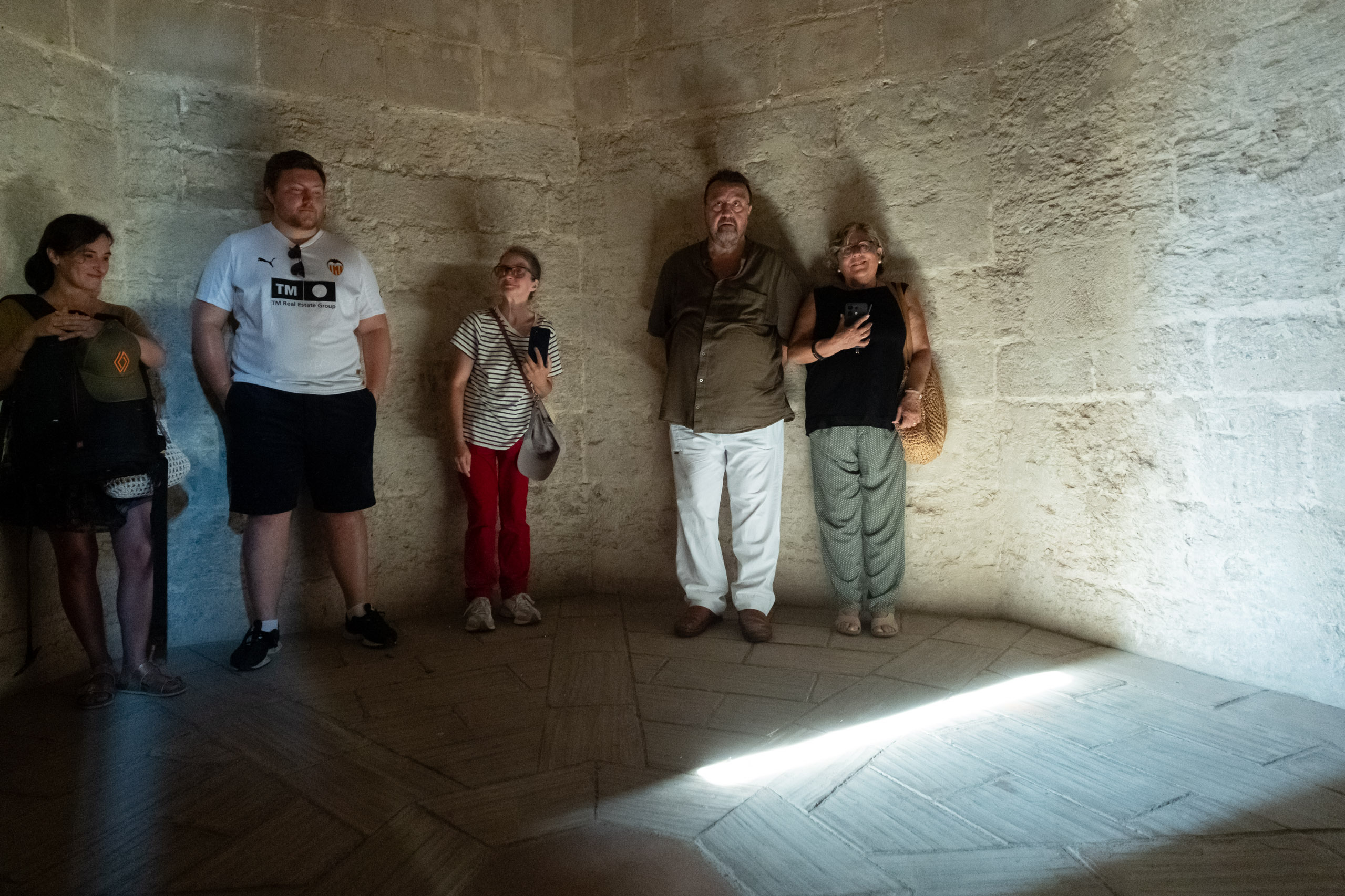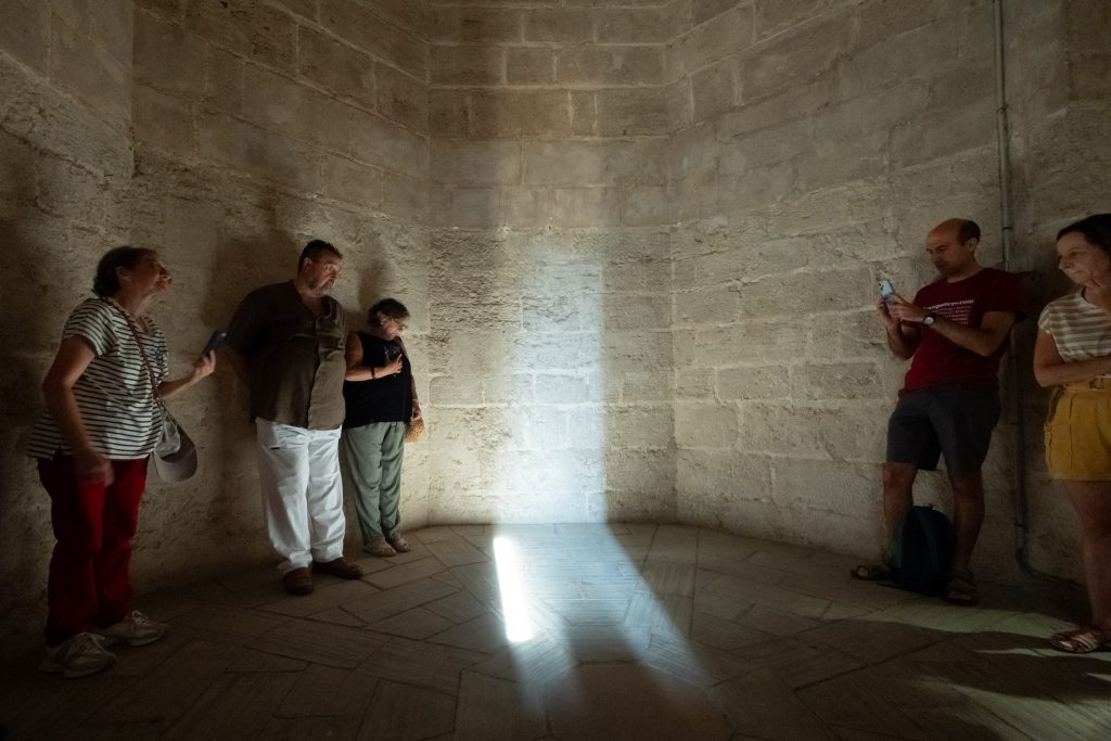 Ocurre en la conocida como “Sala de la Prisión”, en el segundo cuerpo de la torre del Micalet, poco después de las 10 de la mañana: a través de una de las ventanas entran unos rayos solares y se alinean proyectándose en el suelo durante unos diez minutos. “Se trata de un efecto para el que fue diseñada esa ventana en el siglo XIV en homenaje a la titular de la Seo”, añade Llop