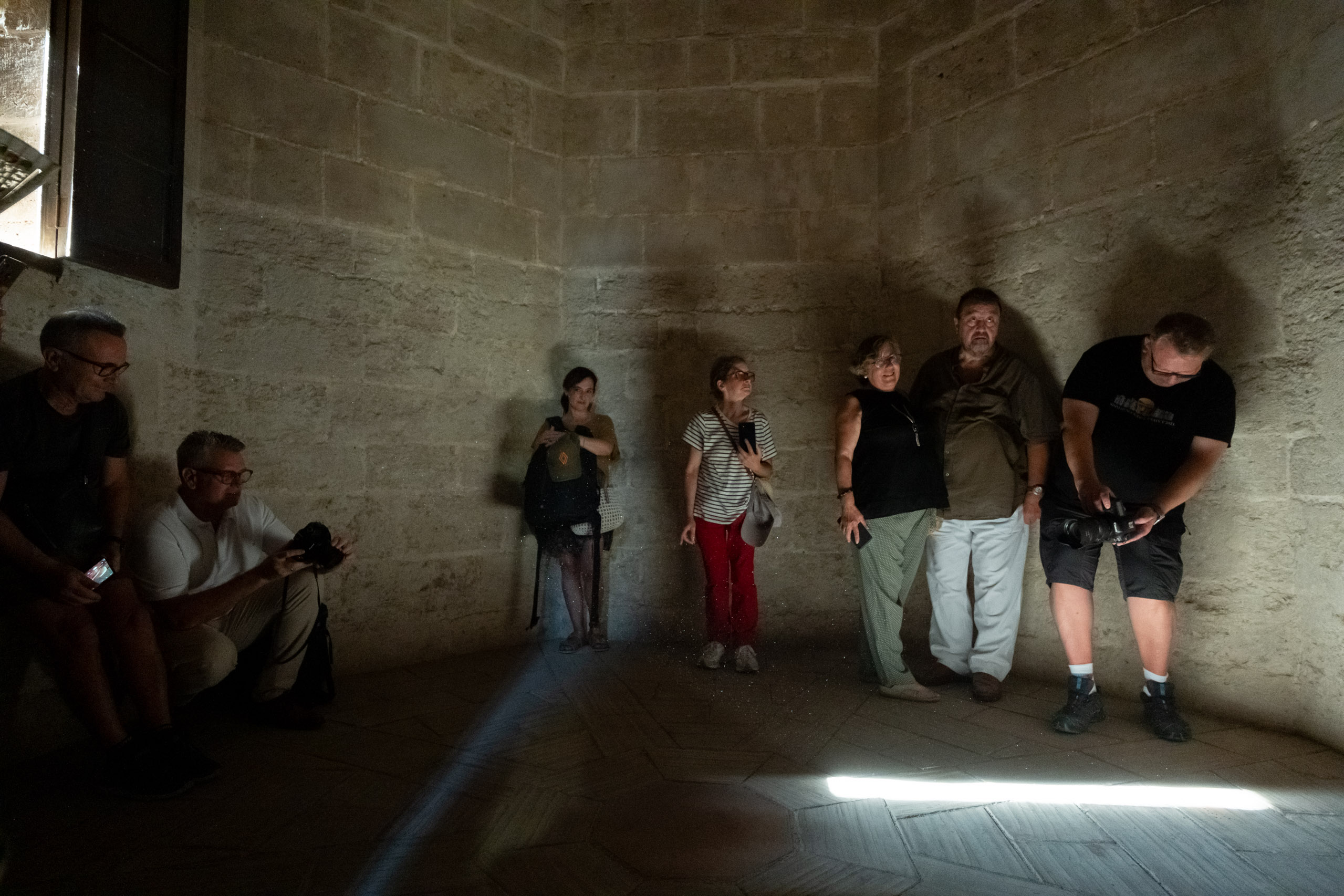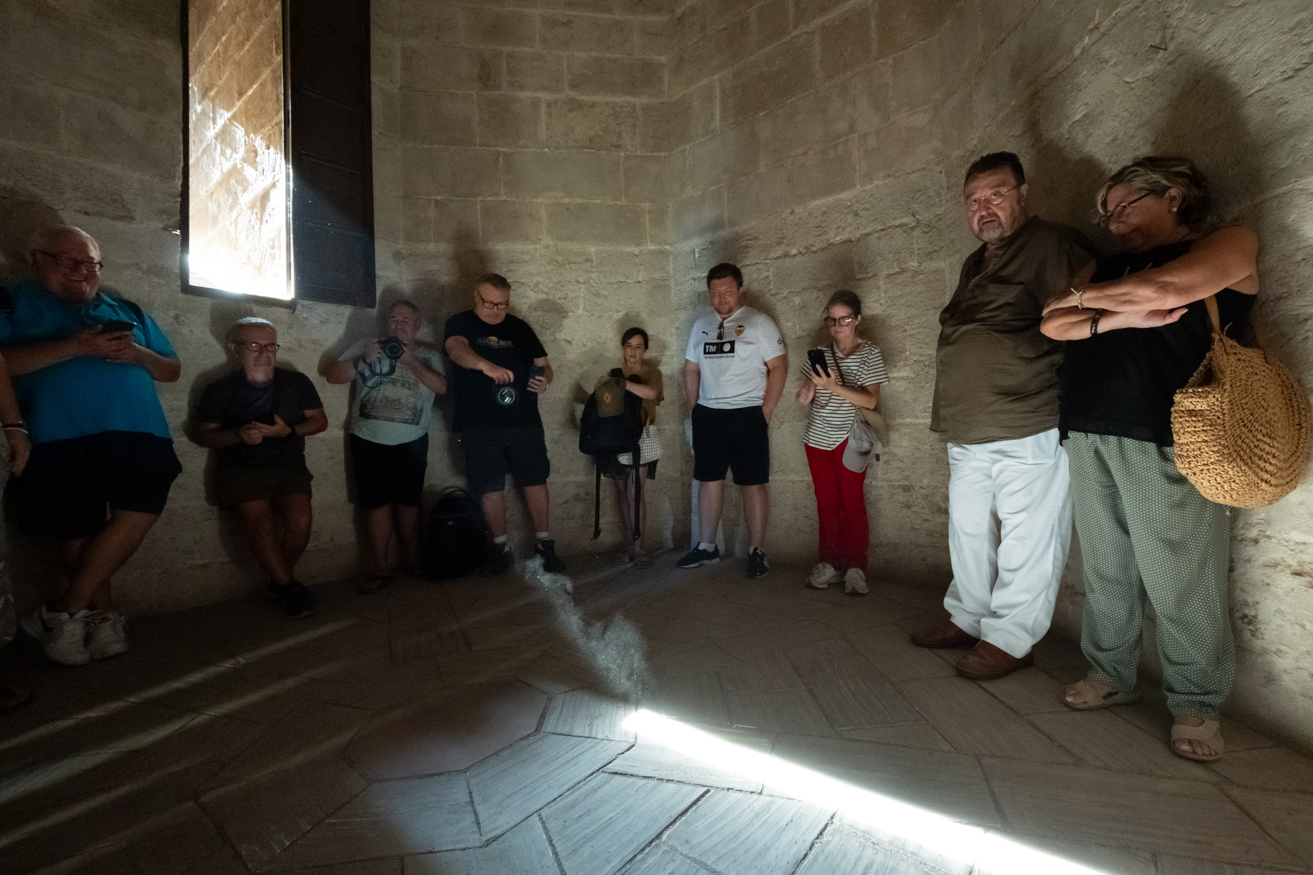 Fueron los campaneros de la Catedral los que lo descubrieron en 2010 “de forma casual cuando, al bajar después del toque acompañando la entrada de la imagen de la Virgen en la Seo, poco después de las 10 horas, vimos que la luz solar entraba alineada por la ventana de la ´Sala de la Prisión`”, señala Francesc Llop, presidente de los Campaners de la Catedral.