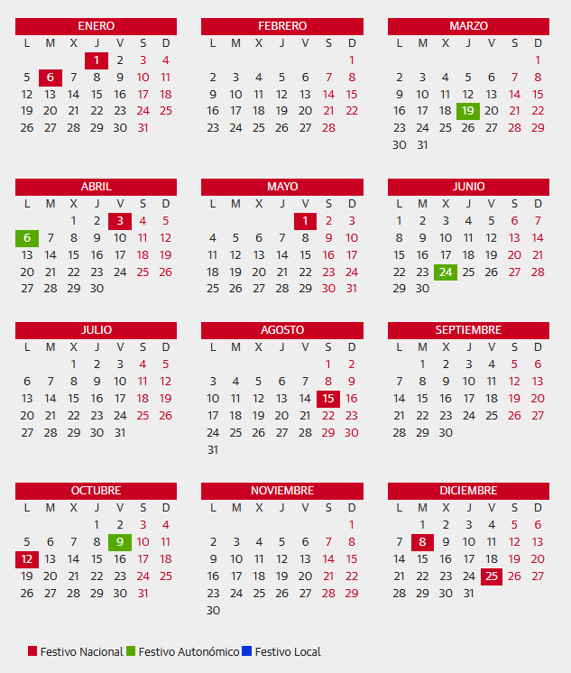 - Lunes 12 de octubre: Fiesta Nacional de España