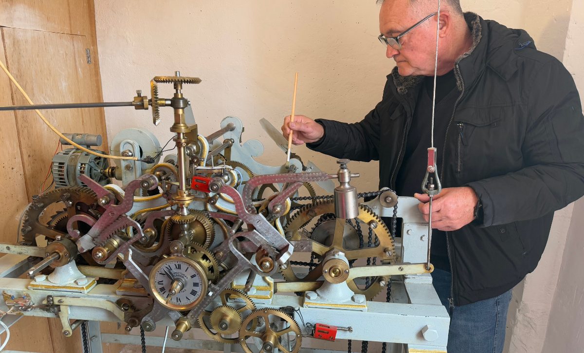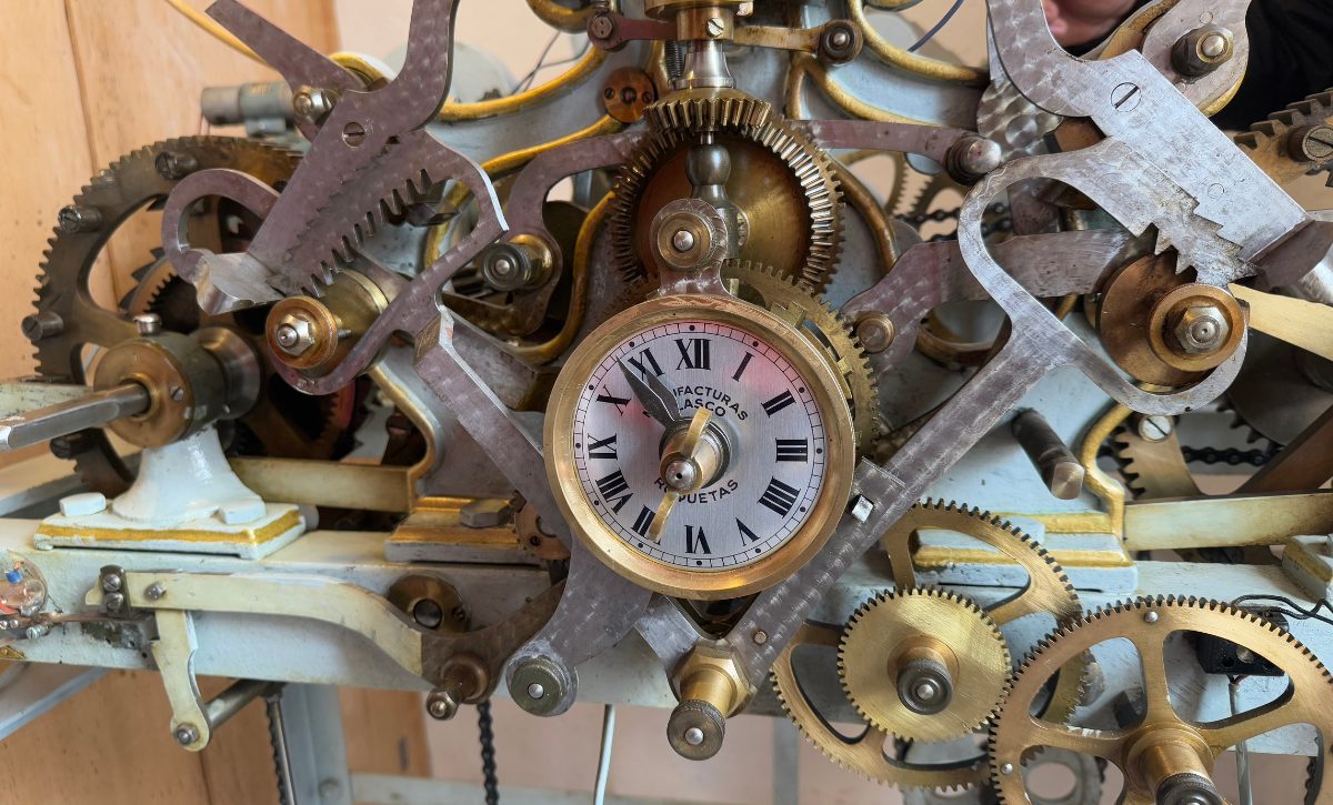 - El relojero José Manuel Andreu realiza los últimos retoques para que el mecanismo funcione de manera precisa