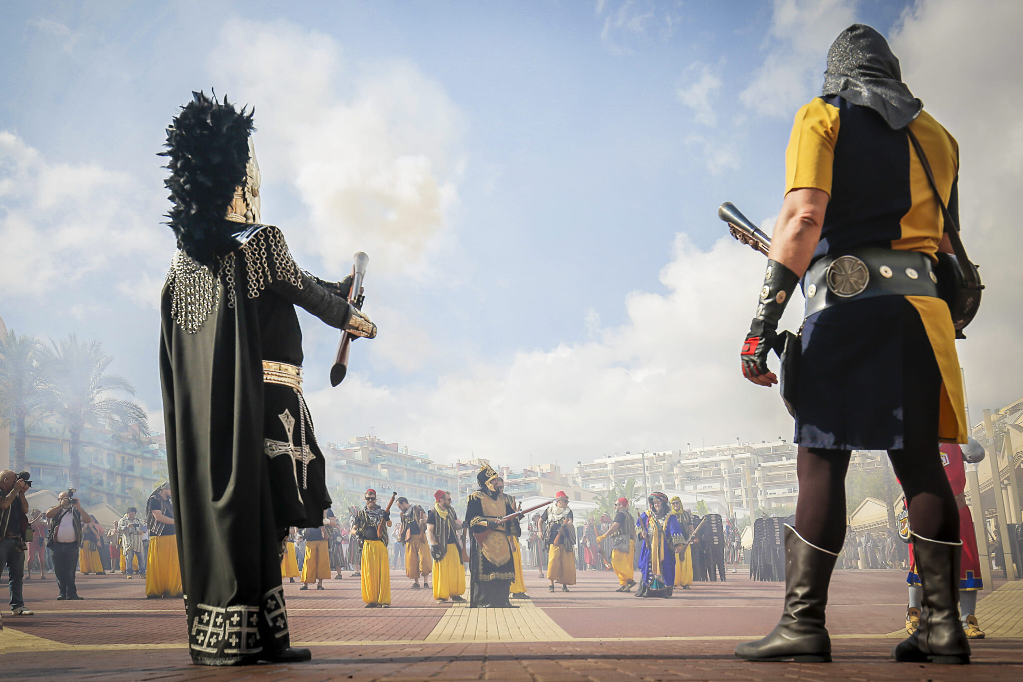 Y el Bando Cristiano cuenta con 5 comparsas: Filà Templaris, Filà Marins Corsaris, Filà Almogávares, Filà Contrabandistas, Filà Mozárabes.