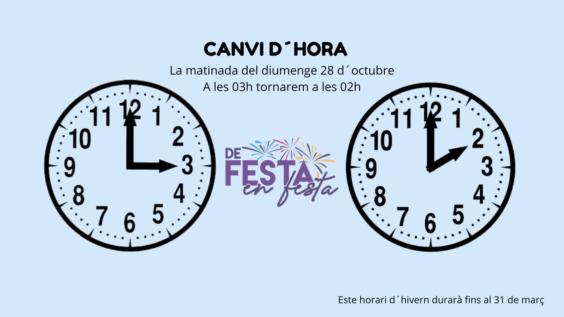 L´horari d´hivern durarà fins a la matinada del 31 de març de 2024 amb el qual donarem la benvinguda a l´horari d´estiu.