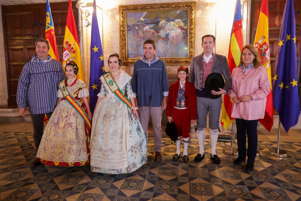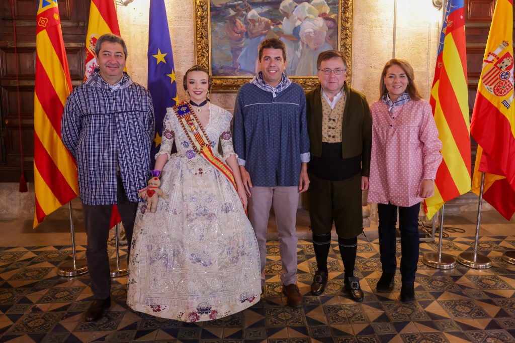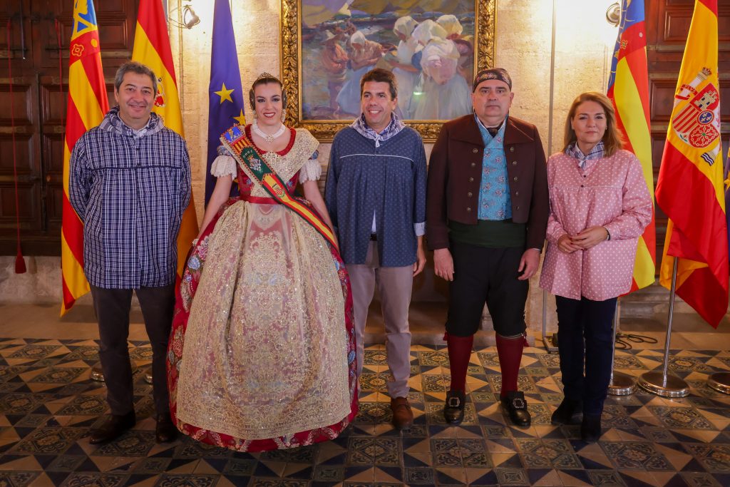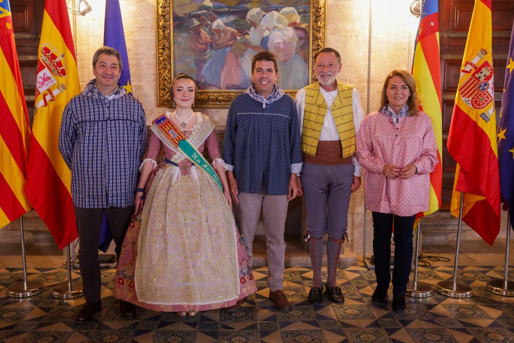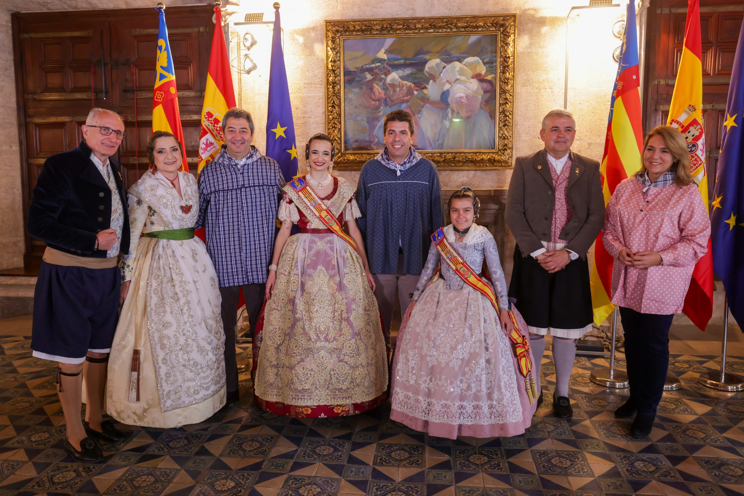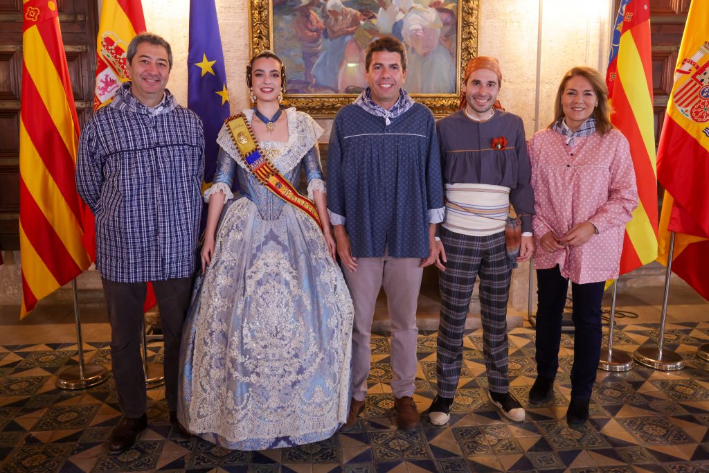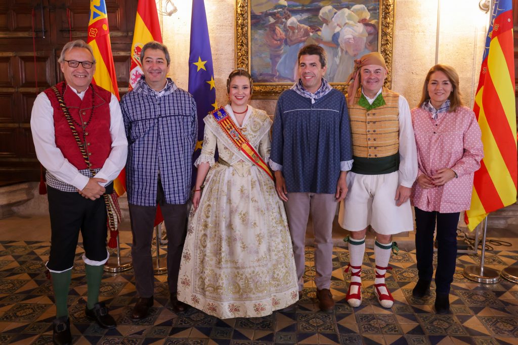 El president de la Generalitat, Carlos Mazón, ha recibido en el Palau a los representantes de las Fallas de la Sección Especial de València, acompañado por el vicepresidente primero y conseller de Cultura y Deporte, Vicente Barrera, y la vicepresidenta segunda y consellera de Servicios Sociales, Igualdad y Vivienda, Susana Camarero.