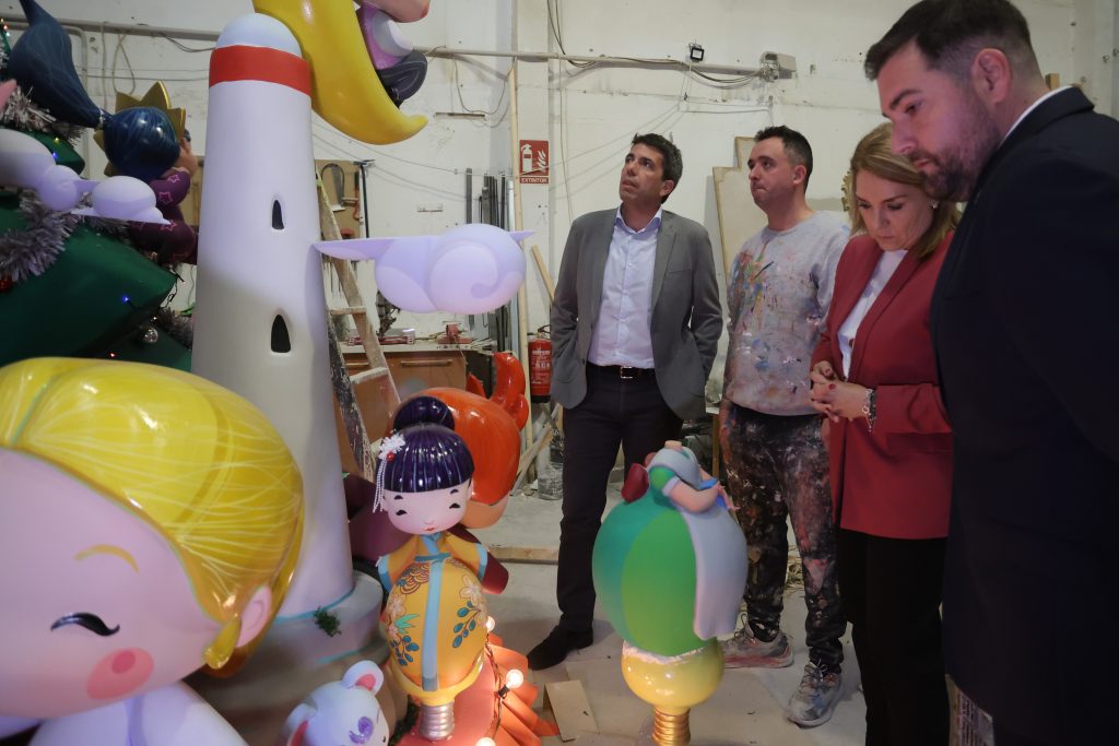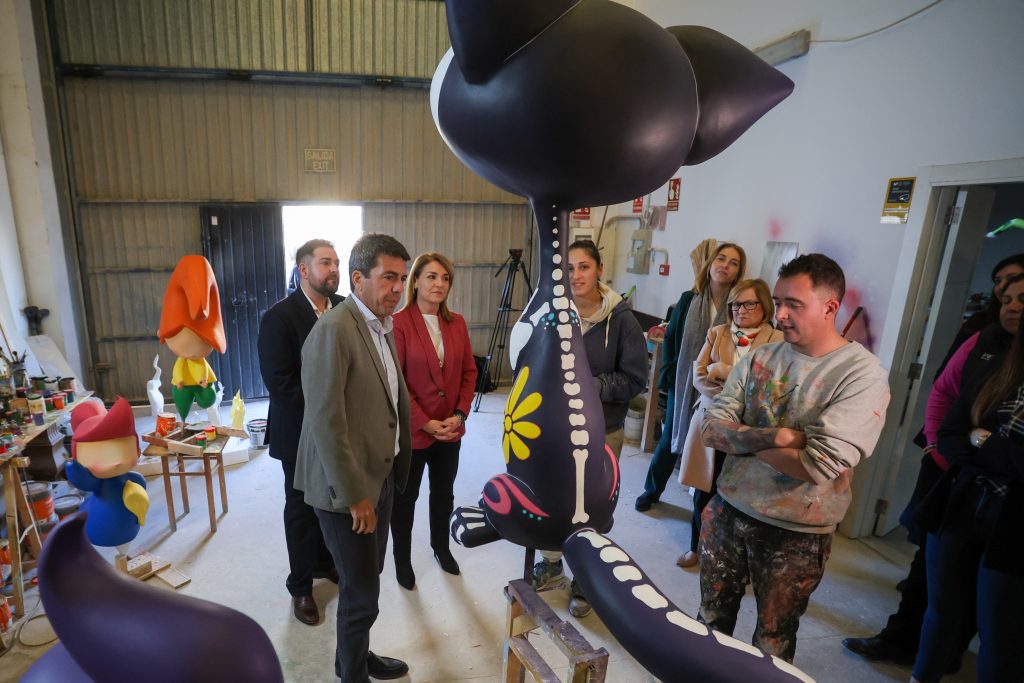 Durante su visita, el jefe del Consell ha conocido el trabajo que llevan a cabo los artistas falleros en los distintos monumentos que serán plantados los próximos días con motivo del inicio de las Fallas 2024.