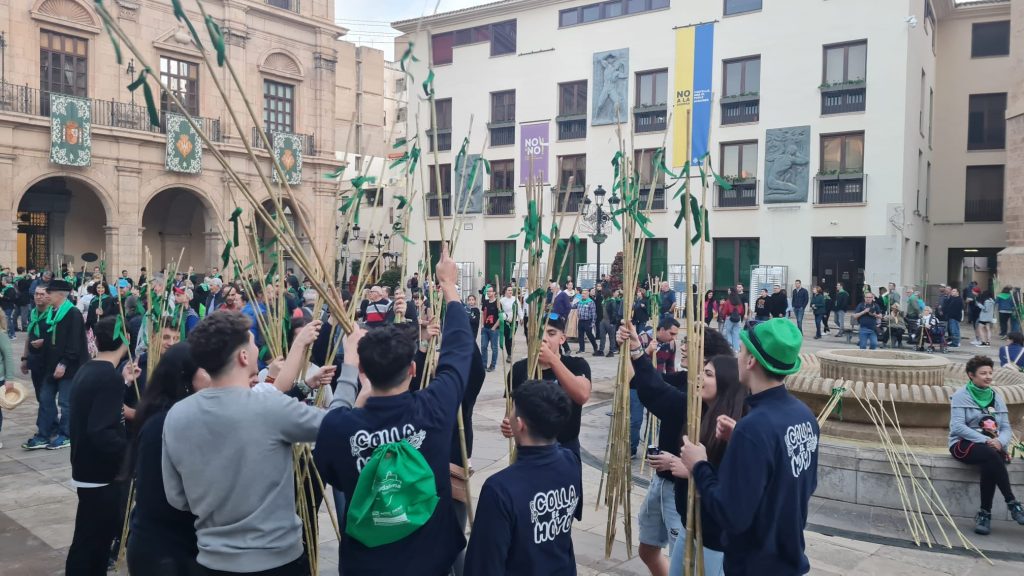 Gran ambiente festivo, donde se han repartido 25.000 cañas con las cintas verdes en la plaza Mayor, donde miles de castellonenses se han acercado a recogerlas.