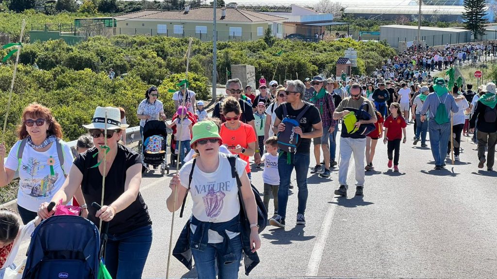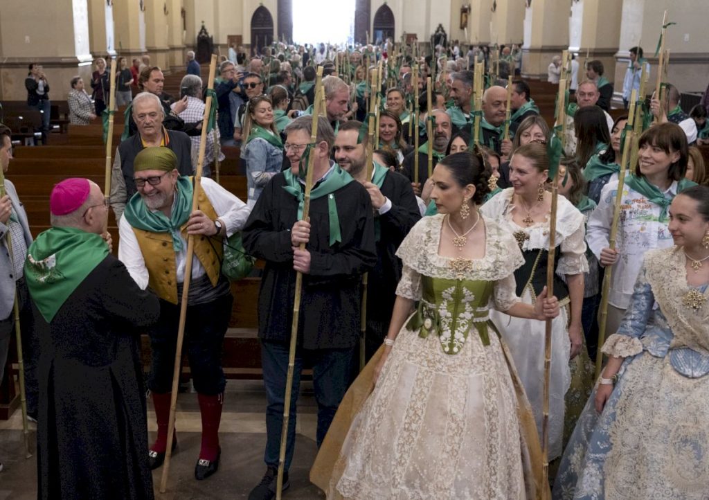 Ataviados con blusas negras, la caña y la cinta verde distintiva de la ciudad, miles de personas han hecho la romería.