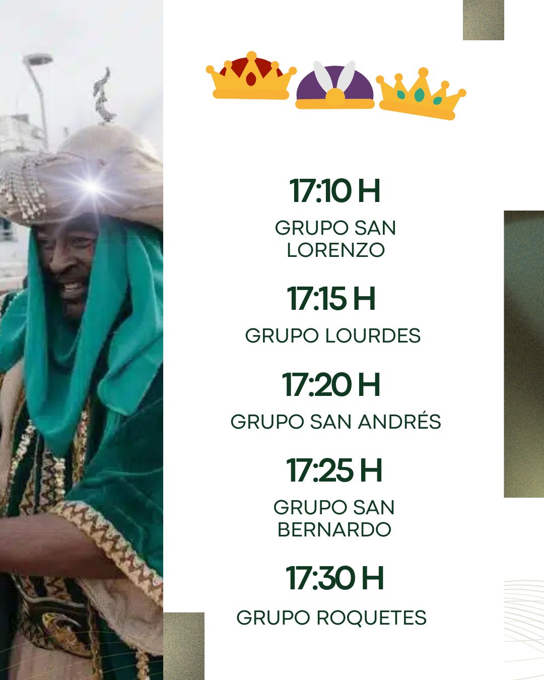 De manera simultánea, a partir de las 16:10 horas, los barrios de la ciudad contarán con la presencia de Reyes Magos que pasarán en vehículos descapotables por el Grupo Benadresa, Grupo Venta Rosita, Grupo Venta Nova, Grupo Reyes, Grupo Roser, Grupo San Agustín y San Marcos, Grupo Tombatossals, Grupo Rafalafena Universitari, Maset Blau, Grupo San Arturo, Grupo El Carmen, Grupo Rosario, Grupo San Lorenzo, Grupo Lourdes, Grupo San Andrés, Grupo San Bernardo y Grupo Roquetes.