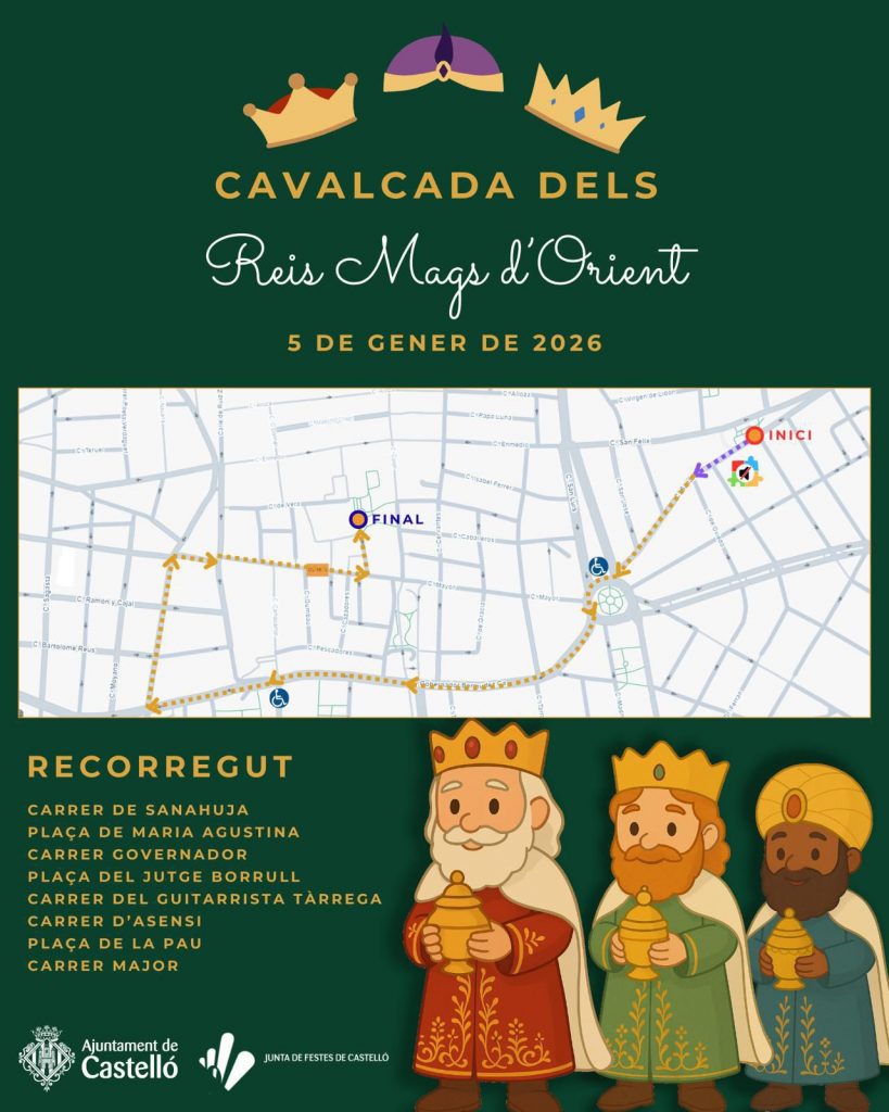 A su llegada, serán recibidos por la alcaldesa de Castellón, Begoña Carrasco, y por la Reina Infantil, Ana Colón, en representación de todas las niñas y niños de la ciudad. La bienvenida contará con animación y música, y dará paso a un recorrido hasta la Tenencia de Alcaldía del Grao, donde los más pequeños podrán acercarse a Melchor, Gaspar y Baltasar.