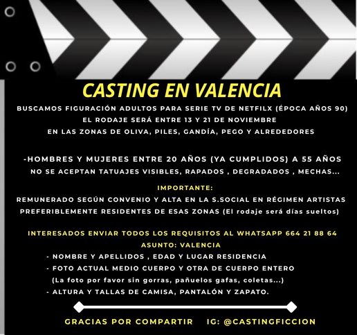 Gandia i el seu entorn tornaran a acollir un rodatge audiovisual d’abast nacional. Una nova sèrie de Netflix, ambientada en els anys noranta, ha obert un procés de selecció de figurants a la ciutat i als municipis pròxims.