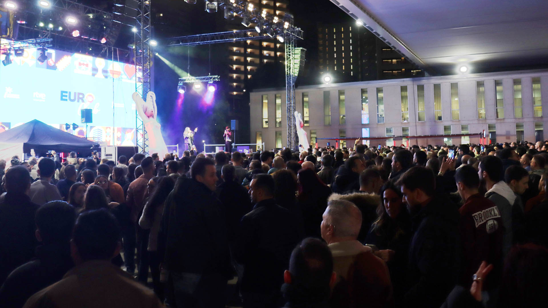 La fiesta del Euroclub organizada por el Ayuntamiento de Benidorm congregó anoche a cerca de 3.000 personas que disfrutaron y vibraron con las actuaciones de dos de las ganadoras de ediciones anteriores del Benidorm Fest, Nebulossa y Blanca Paloma, así como de otros concursantes de este año y exconcursantes de anteriores ediciones. A las puertas de la gran final de la quinta edición, que se celebrará esta noche en el Palau d’Esports L’Illade Benidorm, la plaza de Sus Majestades los Reyes de España se convirtió más que nunca en la casa de los fans del Benidorm Fest, que bailaron y corearon grandes temas que se han convertido ya en himnos del certamen, como ‘Zorra’, ‘Estoy loca por ti’, ‘I’m a queen’, ‘Uh nana’, ‘Me gustas tú’ o ‘Eaea’.