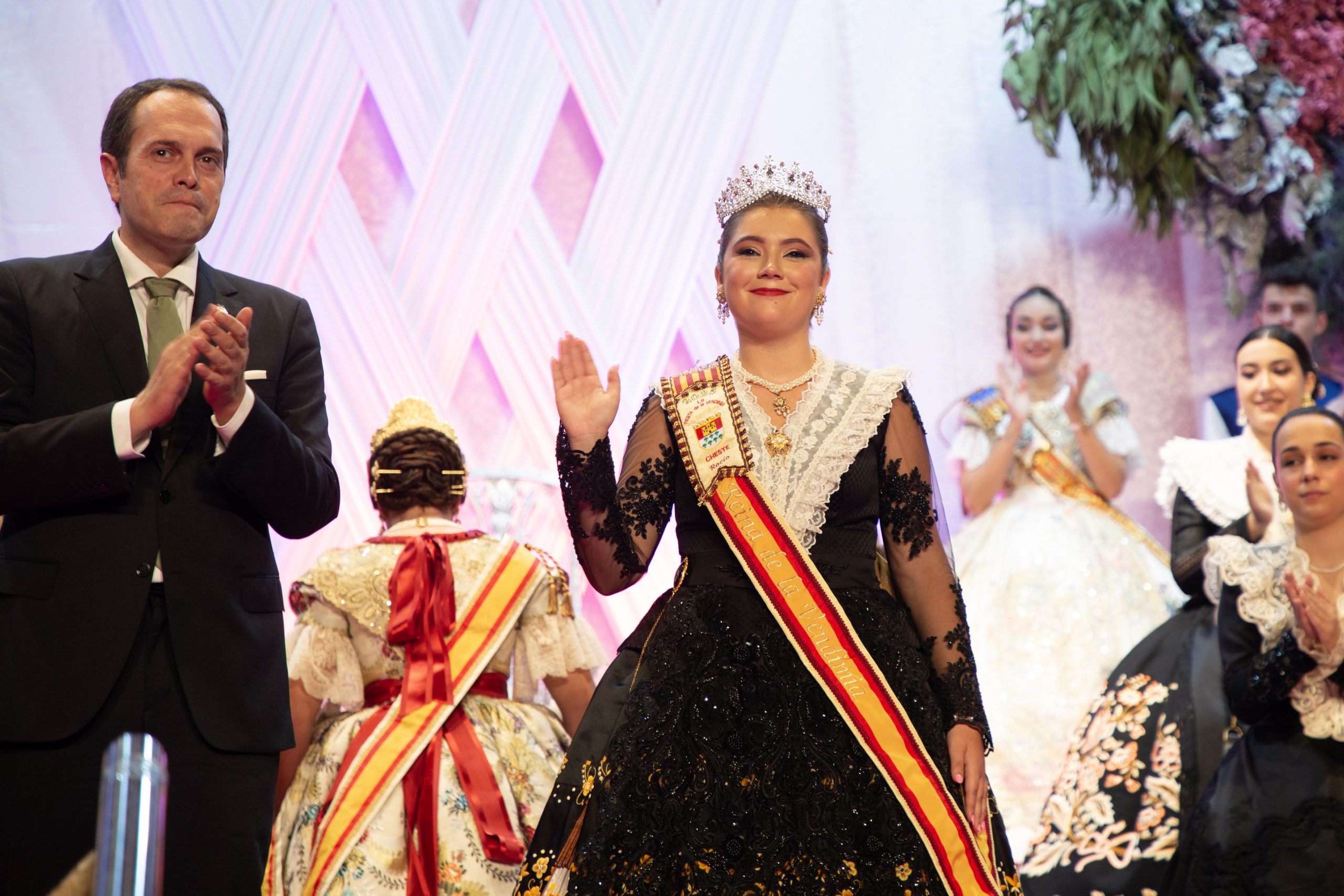 Con toda la corte de honor al completo, llegaba el turno de las Fallas locales, Barrio de La Alegría y Barrio Industria y Comercio, cuyos representantes también ocuparon su lugar en el escenario.