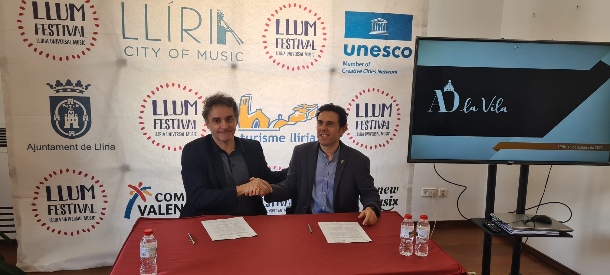 El secretario autonómico de Turisme, Francesc Colomer, ha visitado el municipio de Llíria donde ha firmado con el alcalde de la localidad, Joan Manuel Miguel, un convenio de colaboración entre ambas entidades para apoyar acciones de promoción del producto turístico de Llíria a través de la música. Este acuerdo permite a Turisme destinar 60.000 euros al Ayuntamiento de Llíria para la realización de actuaciones de difusión.