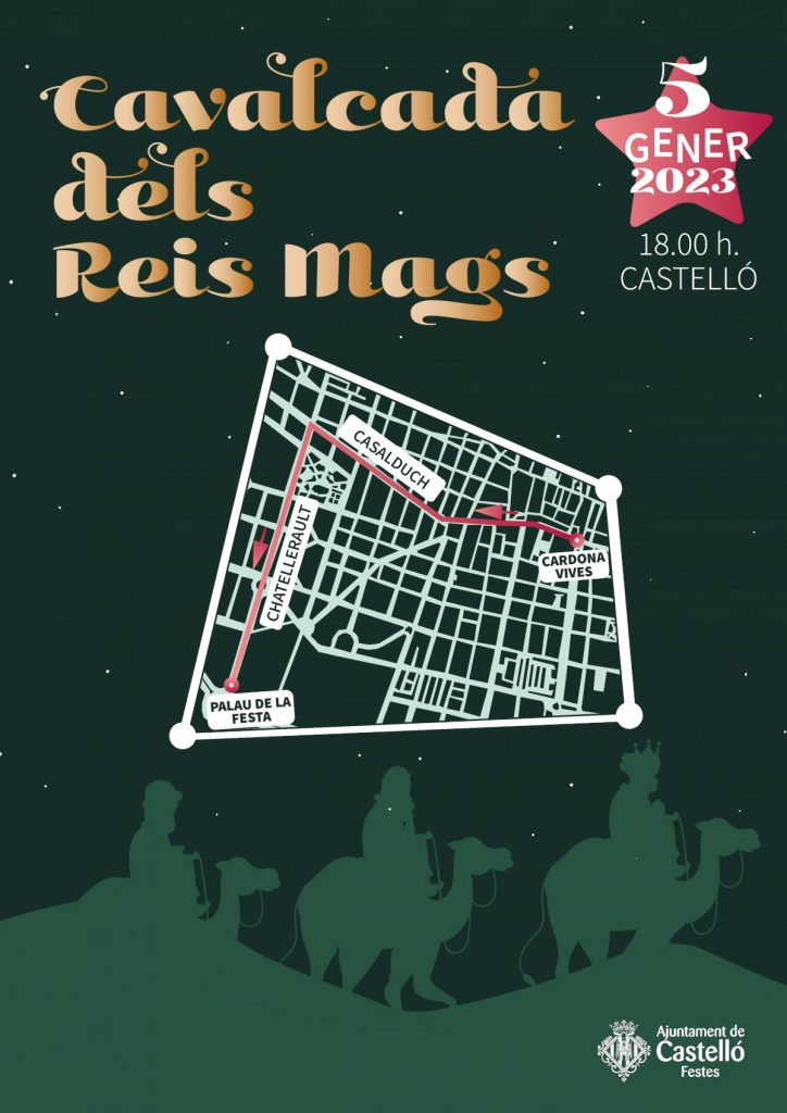 El recorrido partirá desde la plaza Cardona Vives y desfilarán por la calle Gobernador para dirigirse, por las avenidas Casalduch y Chatellerault, hacia el Palau de la Festa donde sus Majestades de Oriente serán recibidos por la alcaldesa de Castelló, Amparo Marco, quien les entregara la llave de la ciudad, como es tradicional.