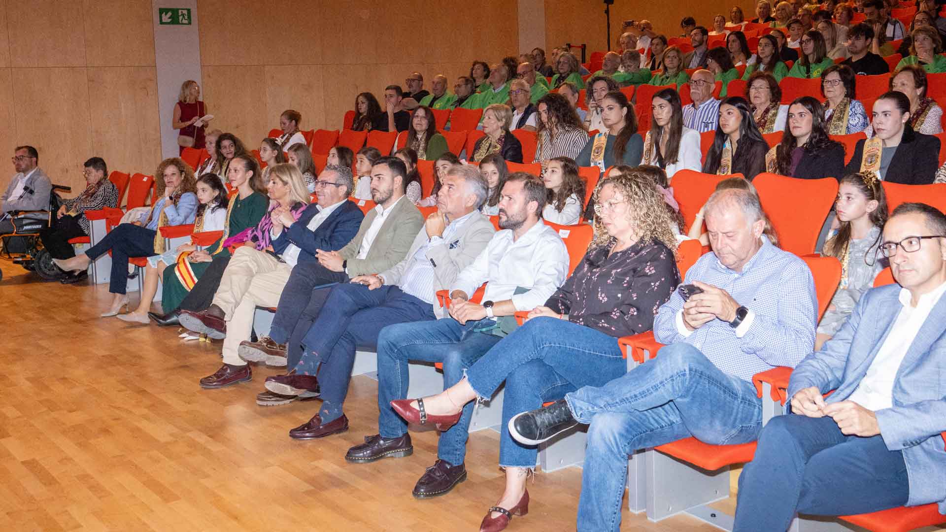 A las 18.30 horas, Felipe Juan Lanuza, director de la sociedad, era recibido con un fuerte aplauso por el público que llenaba la sala. Entre los asistentes, el alcalde, Toni Pérez; los concejales de Cultura y Fiestas, Jaime Jesús Pérez y Mariló Cebreros, y otros miembros de la corporación municipal. También estaban la presidenta de la Comissió, Susana Martínez; las reinas de las FMP 2025, Paula Sánchez y Aitana Pérez; y representantes de otros colectivos sociales y culturales de la ciudad.