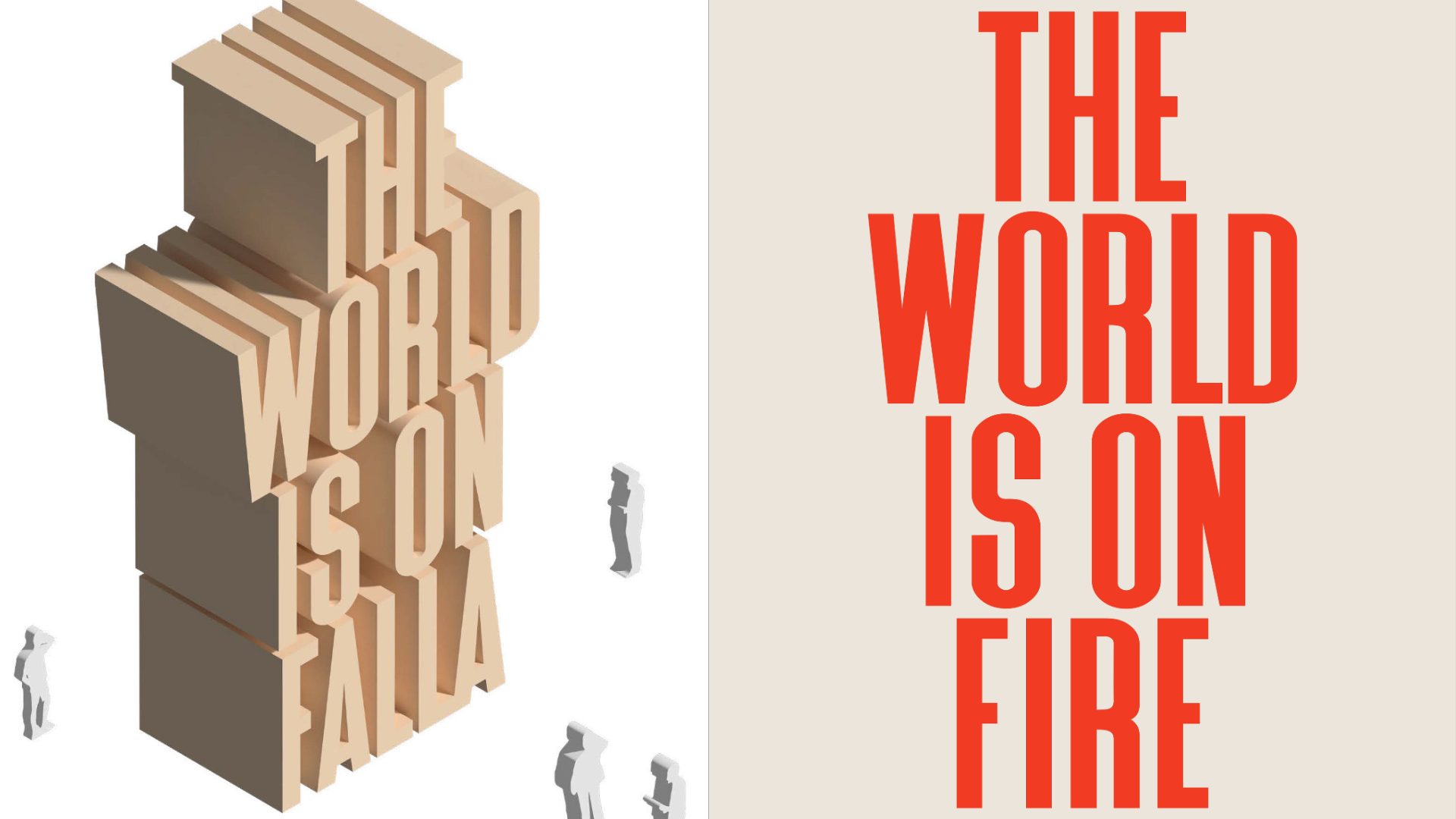 • Des de l’estudi Lo Siento proposen que el missatge constituïsca el monument mateix amb el lema «The world is on fire», el qual posa en relleu la situació planetària: les guerres i el canvi climàtic entorn del concepte de foc
