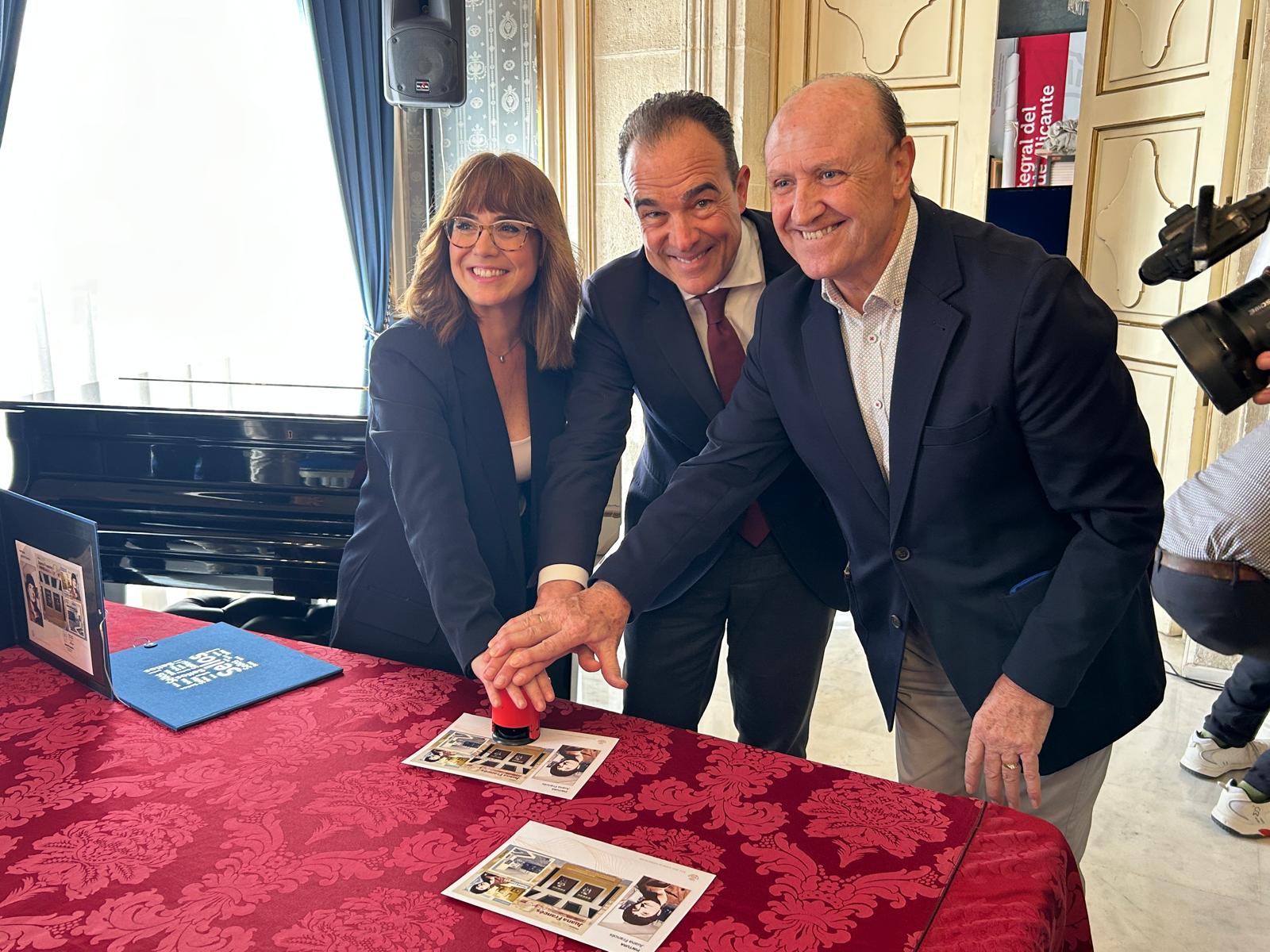 Correos dedica un sello como homenaje a la artista alicantina Juana Francés que recorre España con 70.000 impresiones. El concejal de Cultura, Antonio Peral, y la directora de Filatelia y Relaciones Institucionales de Correos, Nuria Lera, han presentado este jueves la imagen del sello en un acto celebrado en el Salón Azul en el que también ha participado el presidente de la Sociedad Filatélica y Numismática Alicantina, José Miguel Esteban, peticionario de la iniciativa, y que ha contado con la asistencia de familiares de Juana Francés y representantes de la cultura alicantina.