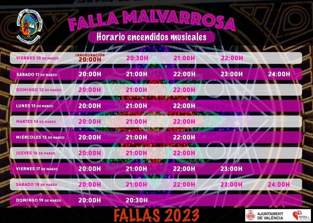 La Falla Malvarrosa – A. Ponz – Cavite será la única de este 2023 con espectáculos de luces con música. Con 35 pases de encendido durante todas las fiestas desde el 10 de marzo, con la inauguración a las 20h.