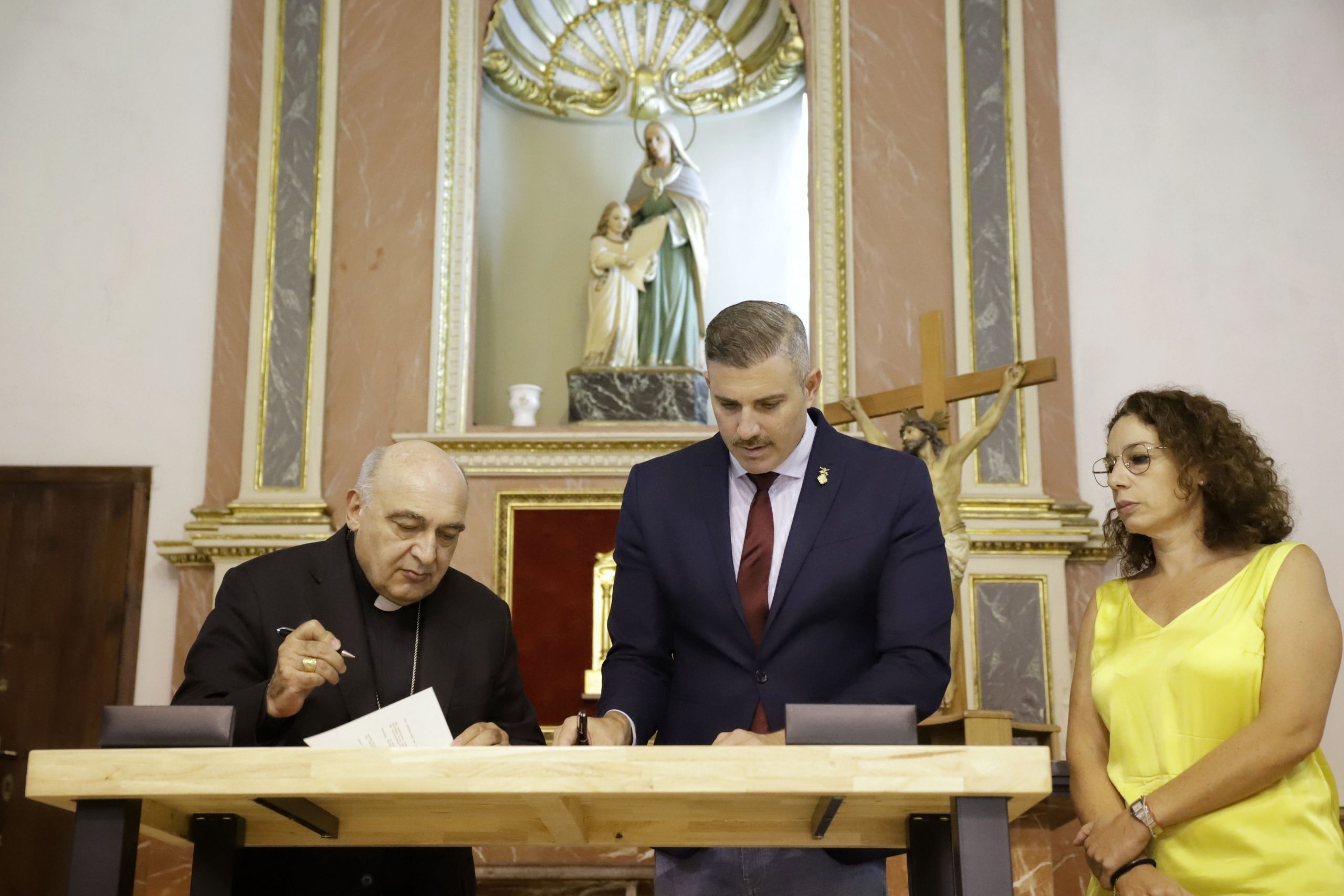 L’arquebisbe de València, Enrique Benavent, i l’alcalde Jordi Mayor han formalitzat aquest conveni de cessió gratuïta, tant de la capella com de la casa abadia ubicades al carrer del Mar, que permetrà a la ciutat tindre un Museu de la Festa per posar en valor, conservar i difondre la riquesa cultural, tradicional i patrimonial de la festivitat local dedicada a la Mare de Déu del Castell.