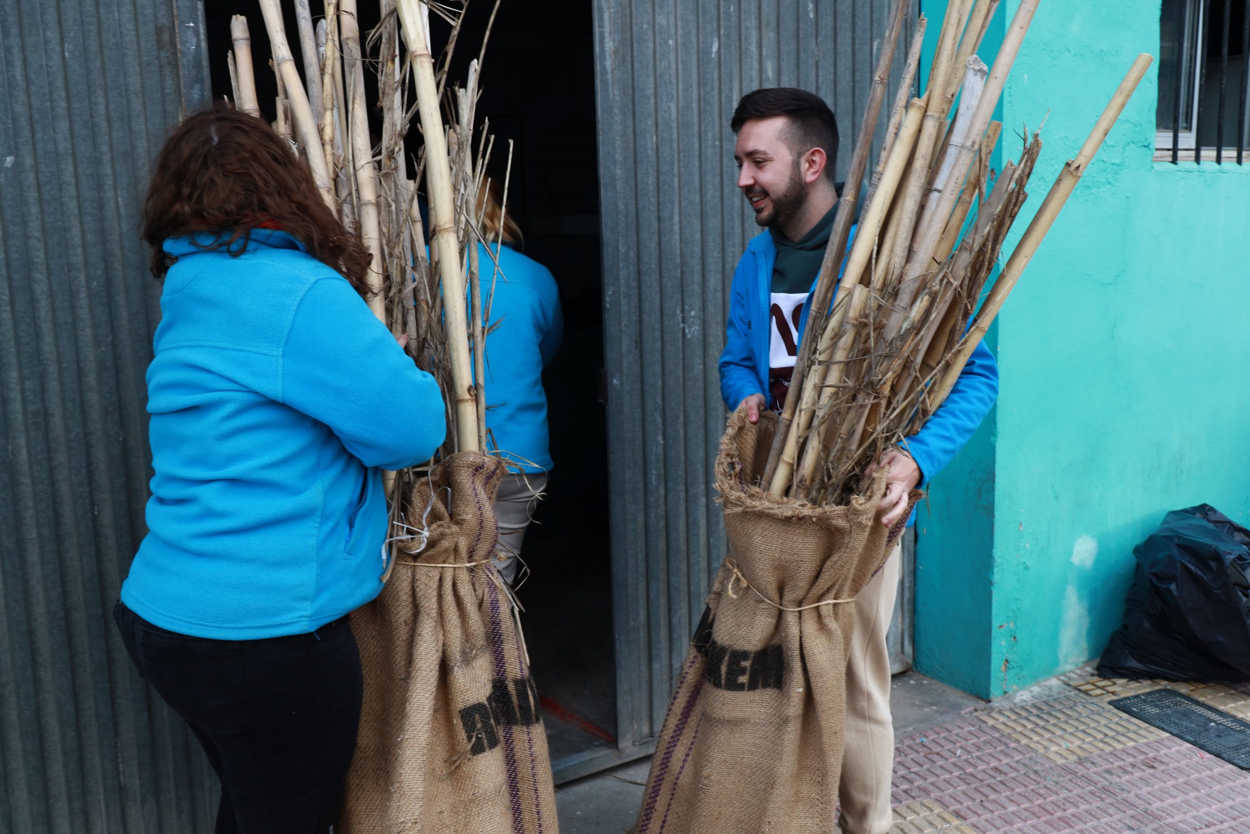 En la tela que subjecta el material vegetal es pot llegir el missatge ‘Renaixem’. Aquest lema es va utilitzar en la Crida, celebrada el 22 de febrer, en la qual es va transmetre un missatge d’esperança, força i unió per a les poblacions afectades i les víctimes de la DANA.