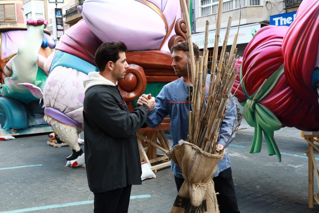 Durant la vesprada d’ahir, els regidors Víctor López i Javier Cerveró van repartir a les comissions falleres dos sacs amb restes arreplegades en el litoral de Cullera. Un per al monument gran i un altre per a l’infantil.
