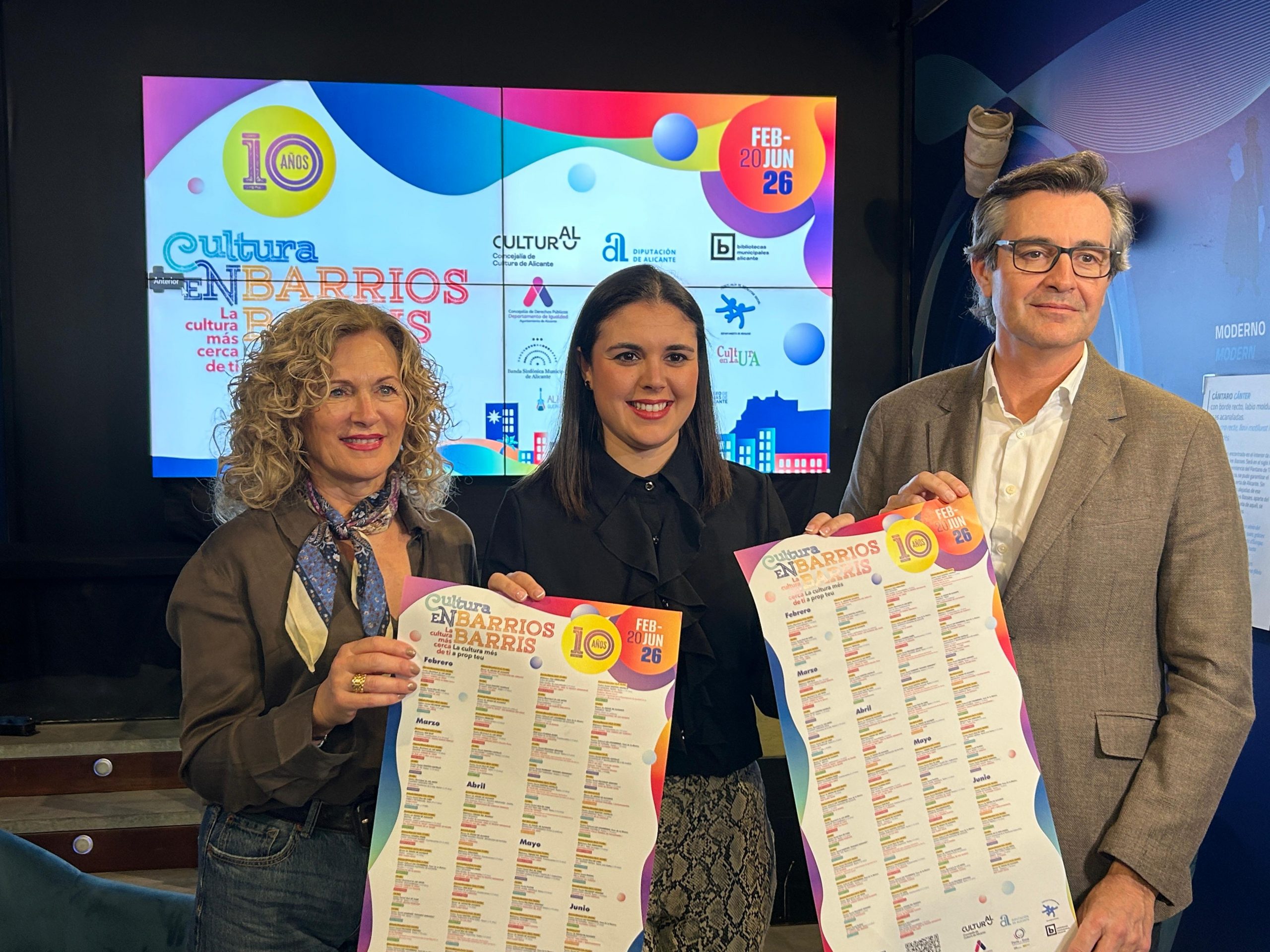 El programa “Cultura en Barrios” cumple diez años con 75 actividades repartidas por toda la ciudad en las que participarán unos 200 artistas. La programación incluye artes escénicas, música, cine, títeres, narración oral, magia y danza en centros sociales, bibliotecas, el Centro Municipal de las Artes, el Museo de Aguas de Alicante y la Concha de la Explanada.