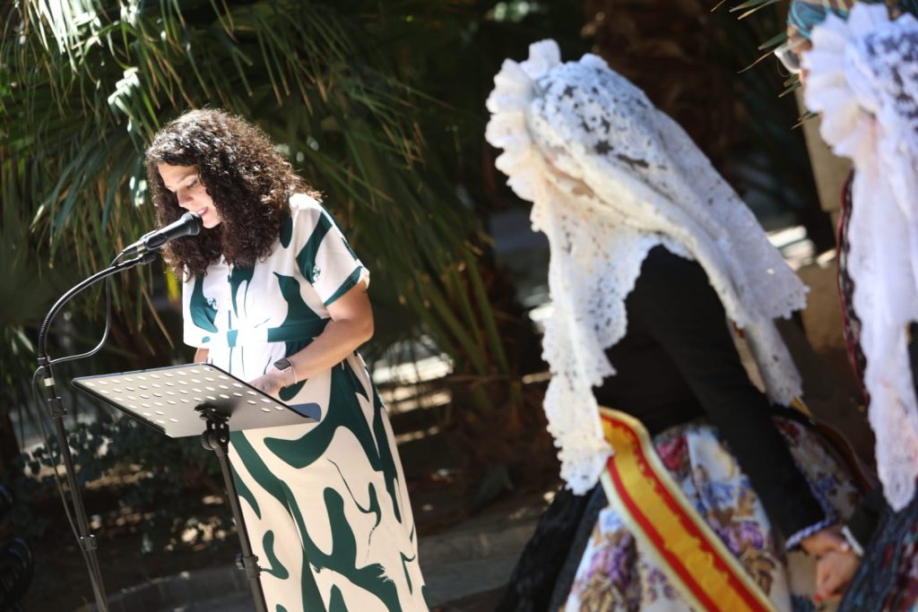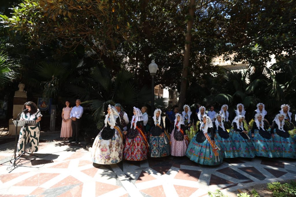 Al homenaje al escritor también han acudido los concejales de Cultura y Seguridad, Nayma Beldjilali y Julio Calero, y las Belleas del Foc, Alba Muñoz y Martina Lloret, junto a sus Damas de Honor y el presidente de la Federació de Fogueres, David Olivares.