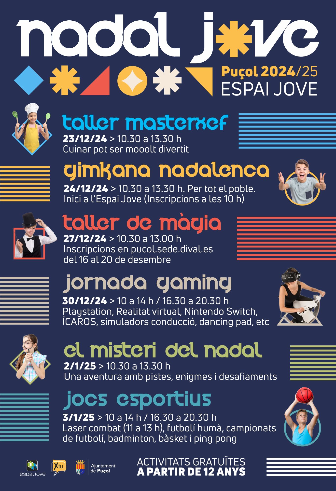 Organizada X Tu, Juventud de Puçol, una programación gratuita para mayores de 12 años, con actividades como gincana, taller de cocina, magia, juegos deportivos, gaming… todas gratis, pero algunas en hay que inscribirse previamente, porque son plazas limitadas. ¡No lo dejes para el último día!