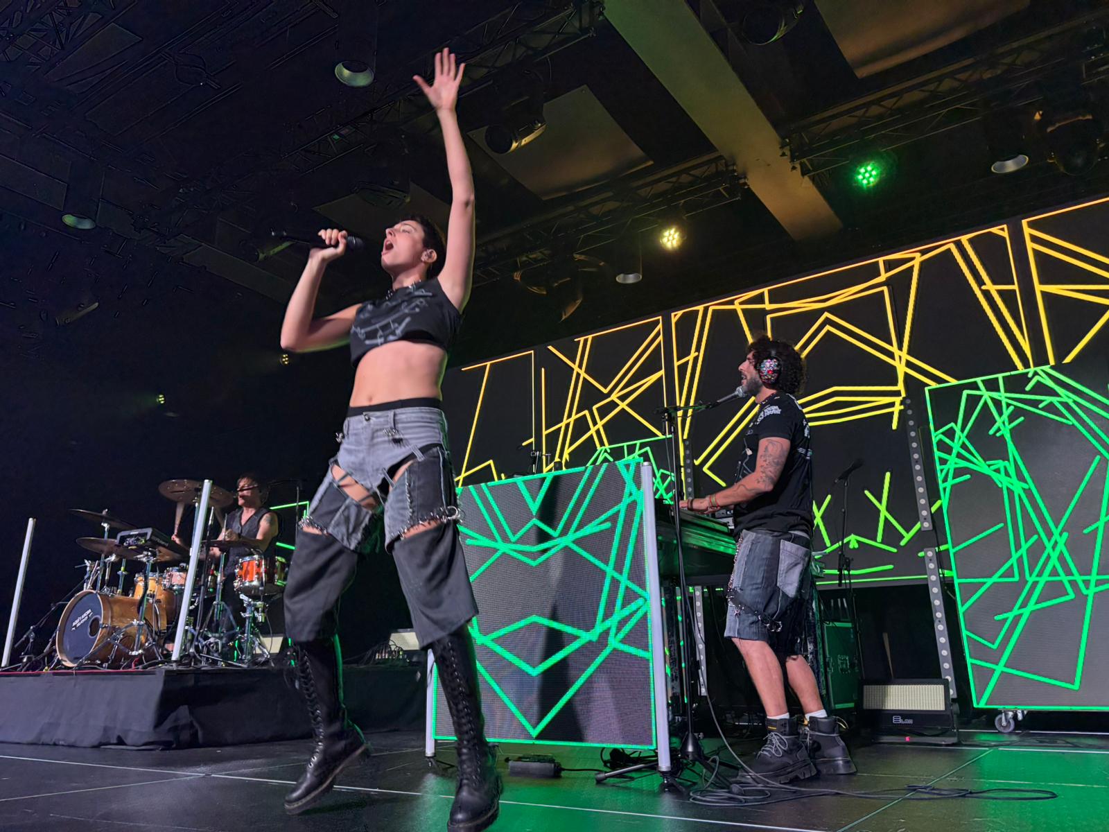 La velada ha arrancado a las 20:15h, con la actuación de Laia Alcolea, teclista de Delaporte y artista invitada. La pianista, productora y compositora madrileña inicia su camino en solitario y, en un show previo al concierto de Delaporte, ha presentado algunos de los temas que formarán parte de su carrera como solista. Canciones como “El Muro”, “Te regalo esta canción” y su primer sencillo “No me fío de mí” han sonado en el concierto.