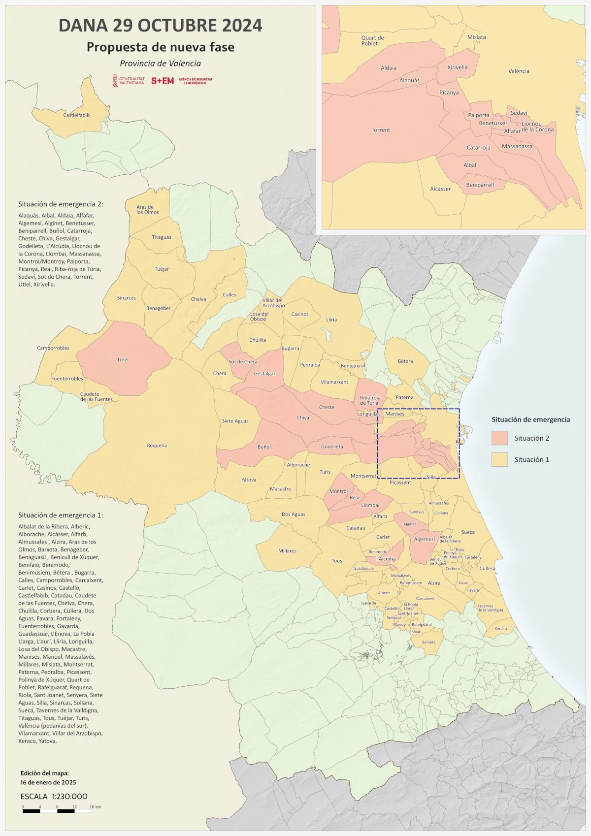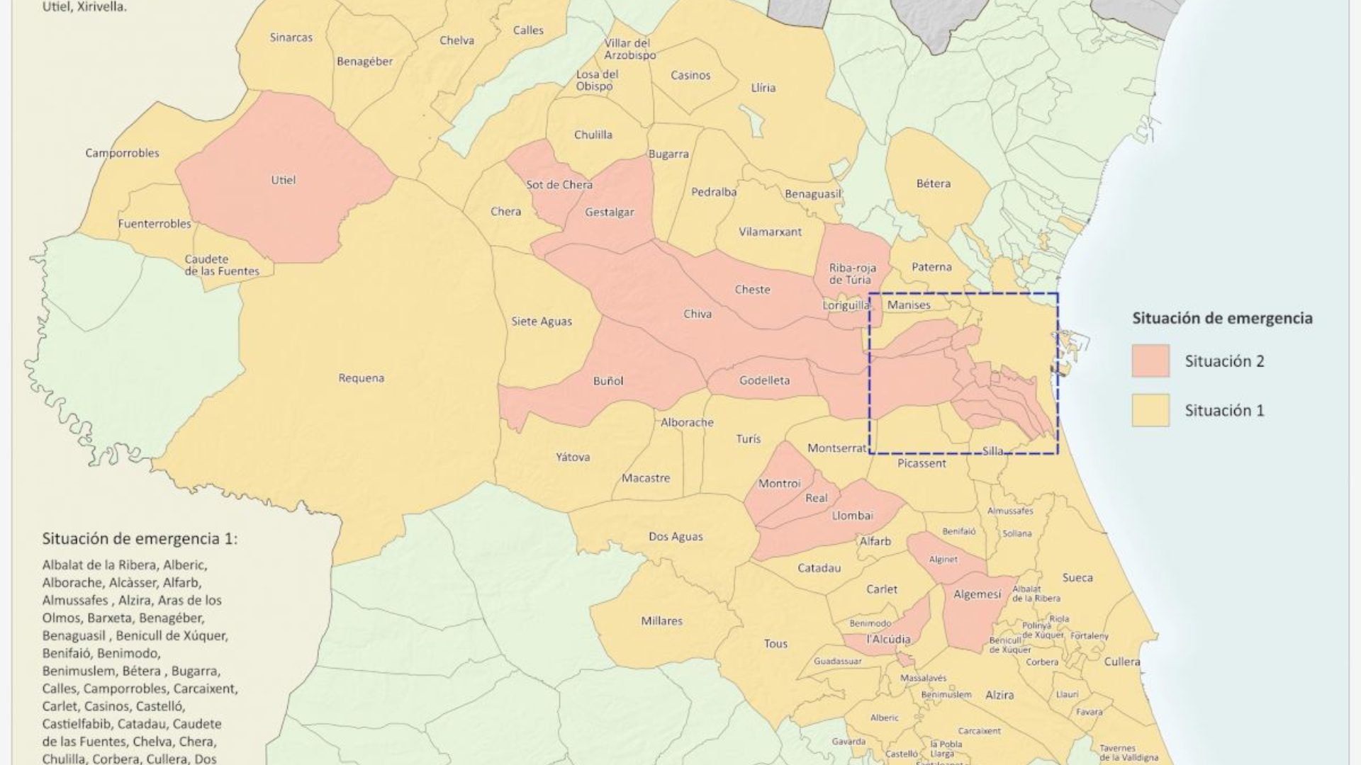 Alaquàs, Albal, Aldaia, Alfafar, Algemesí, Alginet, Benetússer, Beniparrell, Buñol, Catarroja, Cheste, Chiva, Gestalgar, Godelleta, L’Alcúdia, Llocnou de la Corona, Llombai, Massanassa, Montroi/Montroy, Paiporta, Picanya, Real, Riba-roja de Túria, Sedaví, Sot de Chera, Torrent, Utiel y Xirivella.