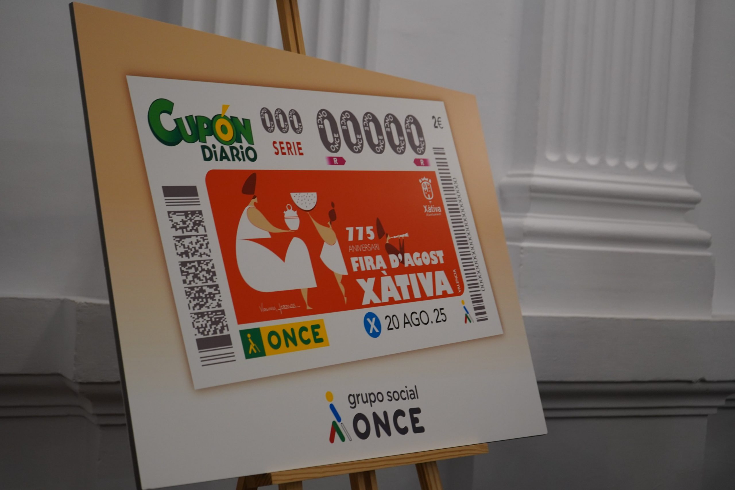 El 775 aniversari de la Fira de Xàtiva serà protagonista del cupó de l’ONCE del proper dimecres 20 d’agost, dels quals es difondran un total de cinc milions. La presentació ha tingut lloc hui a la Casa de Cultura amb la presència de l’alcalde Roger Cerdà, la regidora de Cultura Festiva Maria Beltrán, la Reina de la Fira Irene Díez, el Director de l’Agència de Xàtiva de l’ONCE Simón Costa, el President del Consell Territorial de l’ONCE a la Comunitat Valenciana Enrique Llin.