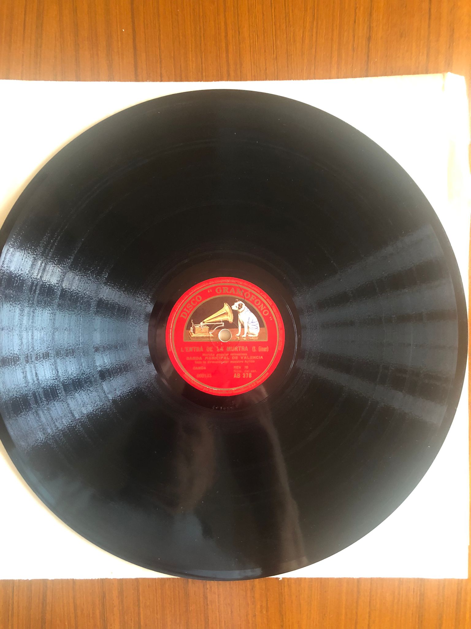 Las dos piezas grabadas en el disco son el Himne de l’Exposició de José Serrano, actualmente himno de la Comunitat Valenciana, y L’entrà de la murta de Salvador Giner, dos composiciones señeras de la música tradicional y bandística valenciana. El disco, de 30 centímetros y 78 revoluciones por minuto (RPM), es posiblemente de pizarra o acetato y está protegido con un sobre de color crema sin ninguna rotulación. La grabación fue hecha para el sello Columbia Compañía del Gramófono y la galleta del disco representa a un perro escuchando un gramófono y la leyenda “Disco Gramófono”. El Palau de la Música de València y la Biblioteca Nacional disponen también de discos de la misma serie pero, curiosamente, es la primera grabación de este características que integra el fondo archivístico e histórico de la Banda Sinfónica Municipal.