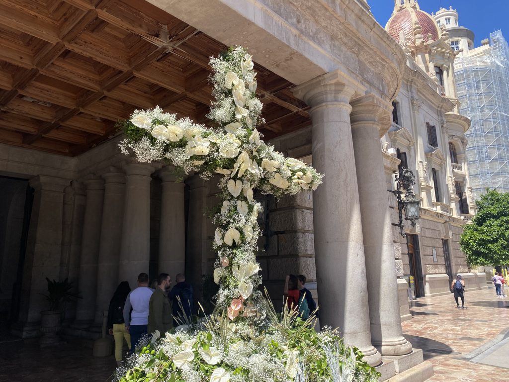 El Ayuntamiento de València celebra la festividad de la Cruz de Mayo, hoy este símbolo luce delante del edificio consistorial. De esta forma, la cruz municipal se suma a las 85 cruces de mayo que se instalarán por toda la ciudad a manos de diferentes asociaciones culturales, comisiones festivas, parroquias y diversas entidades que se inscriben para la participación en el concurso convocado por Lo Rat Penat desde 1949.